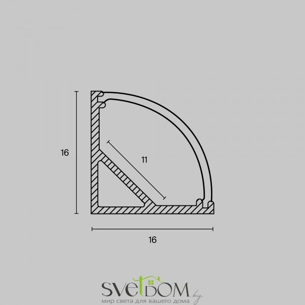 Купить Алюминиевый профиль накладной 16x16 R ALM008S-2M
