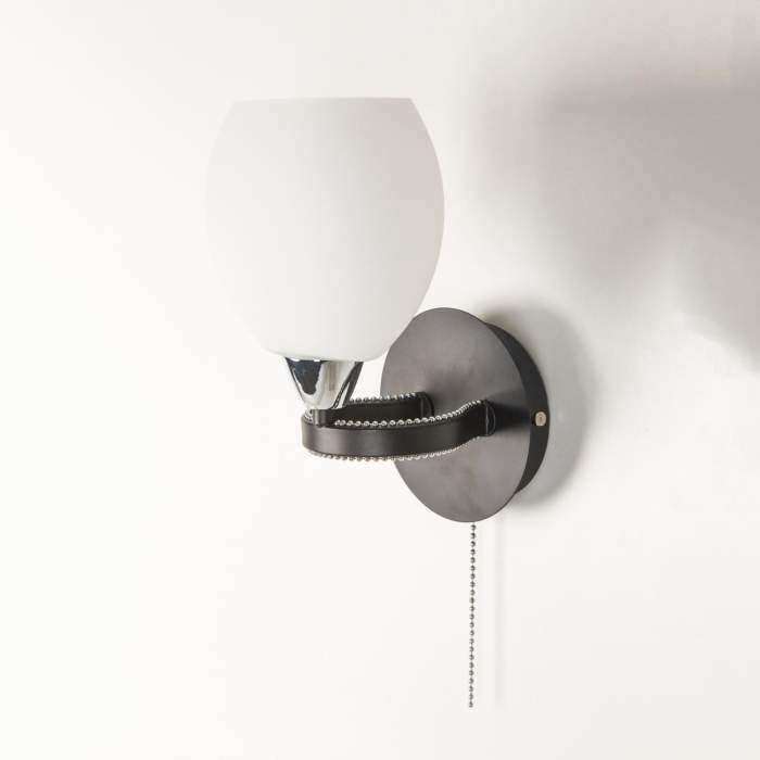 Citilux Октава CL131312 Бра с выключателем Чёрное — Бра (Настенный) Октава Черный + Хром Ширина 16 см, Высота 20 см, Глубина 16 см, с выключателем