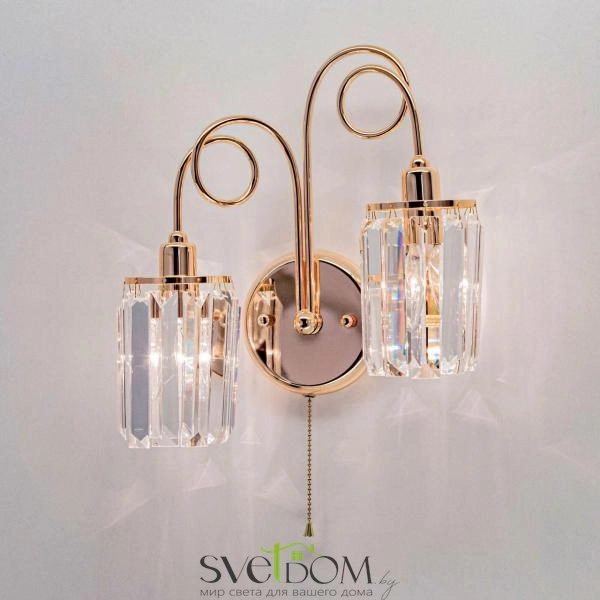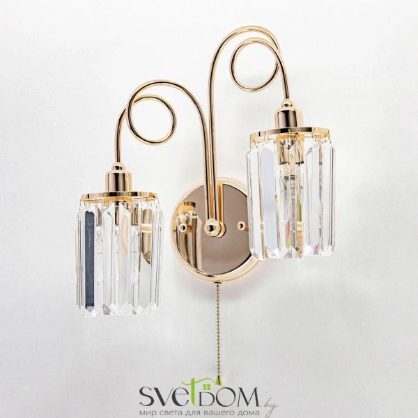 Citilux Синди CL330322 Бра хрустальное с выключателем Золото — Бра (Настенный) Синди Золото Ширина 38 см, Высота 40 см, Глубина 17 см, С выключателем, Призматические хрустальные подвески CL 330 SINDY: Вдохновение в каждом луче.