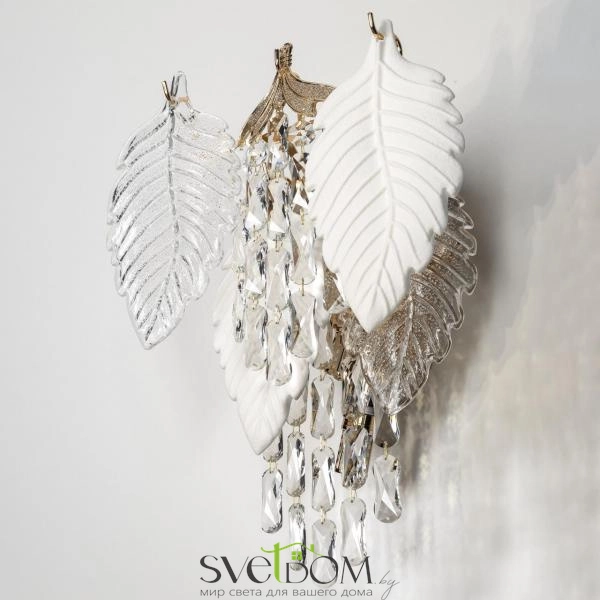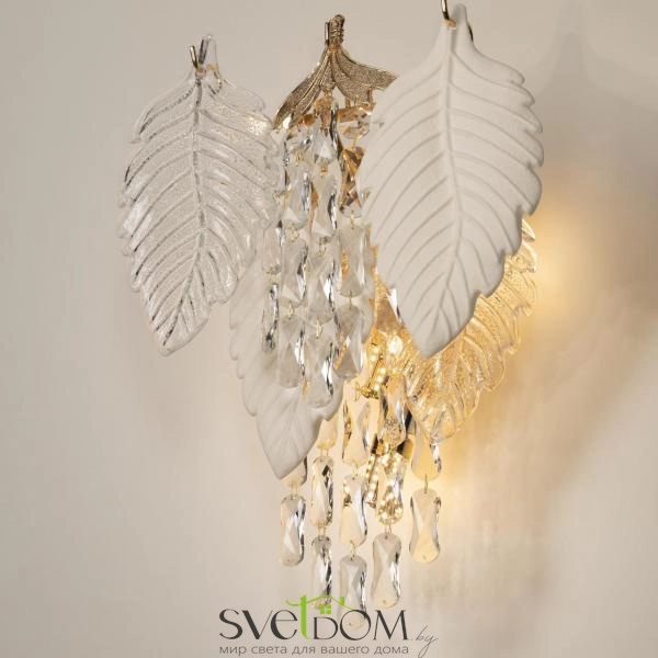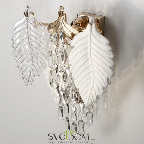 Citilux Darby CL309342 Бра хрустальное Золото — Шикарный настенный светильник Darby искусно украшен каскадом хрустальных подвесок и великолепно декорирована прекрасными стеклянными листьями.