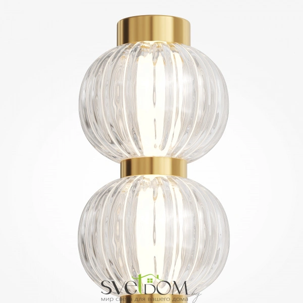 Арматура из металла, цвет –  золото, хром. акцентный декор в виде рельефных сфер из литого стекла. источник света – светодиодная лента – скрыта под акриловым рассеивателем. регулируемая высота подвесных светильников.