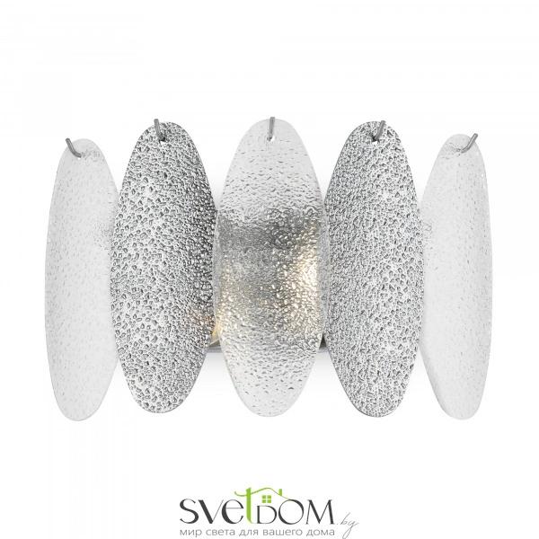 Сложность и в то же время утонченность фактурного декора – уникальная особенность серии demure. металлическая арматура светильника окрашена в  цвет хрома. источники света обрамляют вытянутые пластины – овальные лепестки, формирующие гармоничный и изящный силуэт. мягкий свет, струящийся сквозь фактурный декор, напоминает блики морских волн. водная гладь преломляется и отражается в пластинах, образуя  переливы. серия включает люстру и бра, что позволяет организовать комплексное освещение в гостиной, спальне и любых жилых пространствах. современные формы модели актуальны для различных стилей – от элегантной неоклассики и торжественного ар-деко до фьюжн и эклектики.