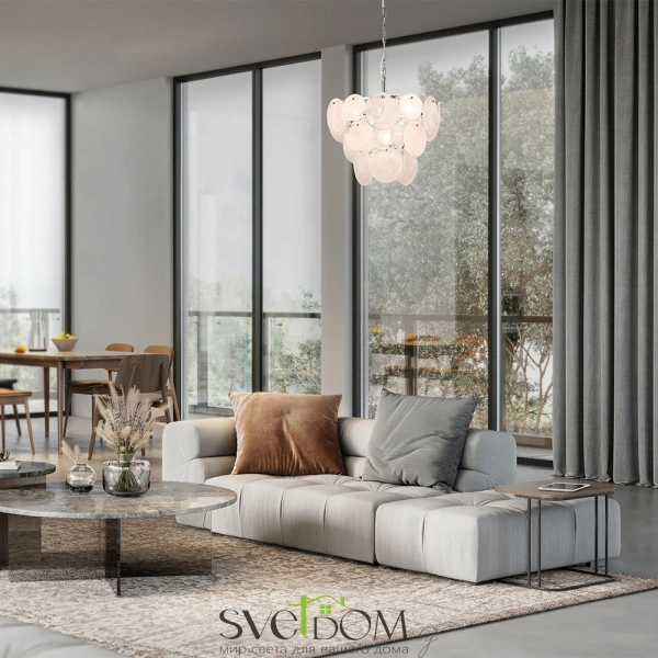 Оригинальный декор серии sophia создает эффектный и запоминающийся визуальный образ. металлическая арматура окрашена в два оттенка на выбор: латунь и хром. источники света обрамляет многоуровневый и разноразмерный стеклянный декор. прозрачные пластины с вкраплениями воздушных пузырьков и белого стекла, сделанный вручную, создают эффект замороженной фактуры. композиция кажется невесомой и парящей, а световой поток, проходя сквозь фактурную поверхность, дает атмосферную подсветку. модель предназначена для комнат, оформленных в стиле ар-деко, модерн, неоклассика. подвесные люстры на 5 ламп и бра обеспечат комплексное освещение интерьера. также вы можете составлять настенные композиции из бра в стиле архитектурной подсветки, используя два цвета арматуры.