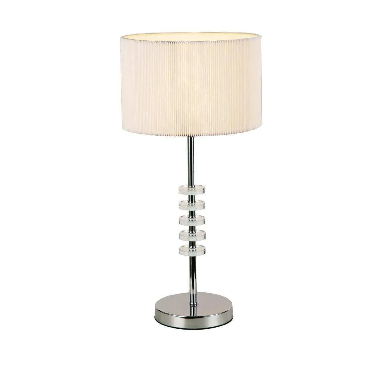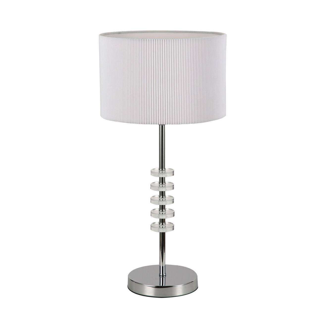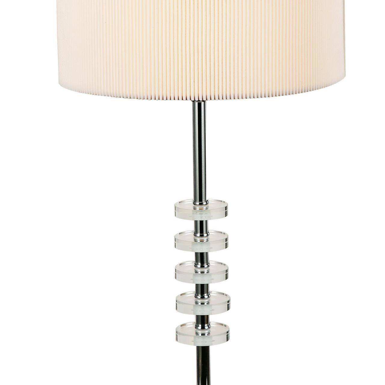 Каркас цвета хром, абажур из белой ткани, декоративные блюдца из прозрачного стекла