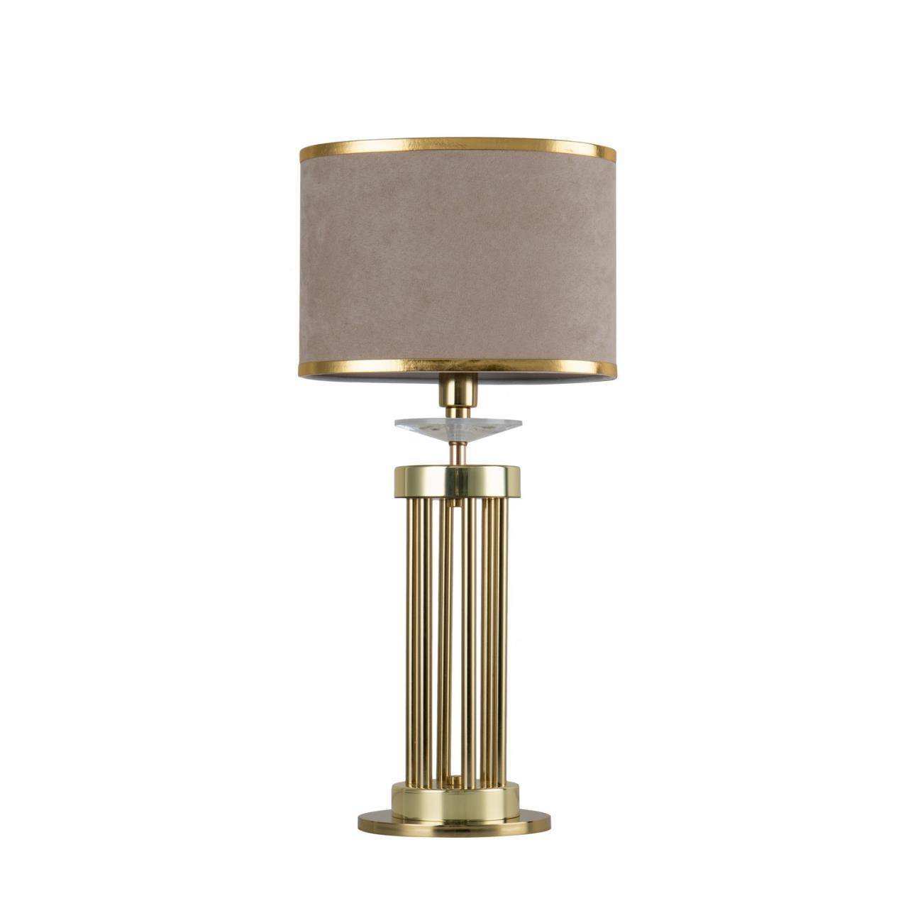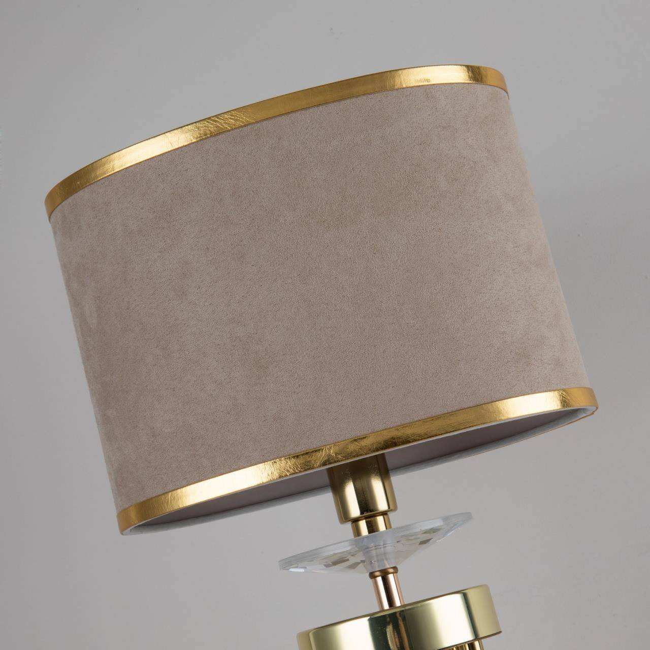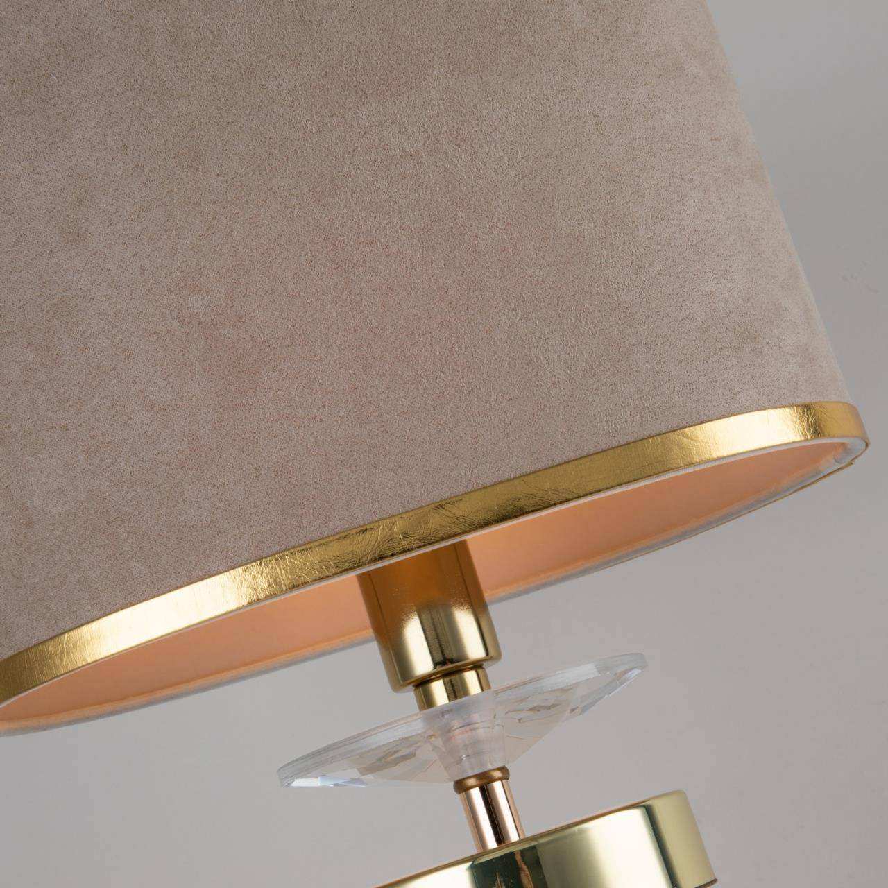 Каркас цвета латунь, абажур из бежевой бархатистой ткани с золотой тесьмой
