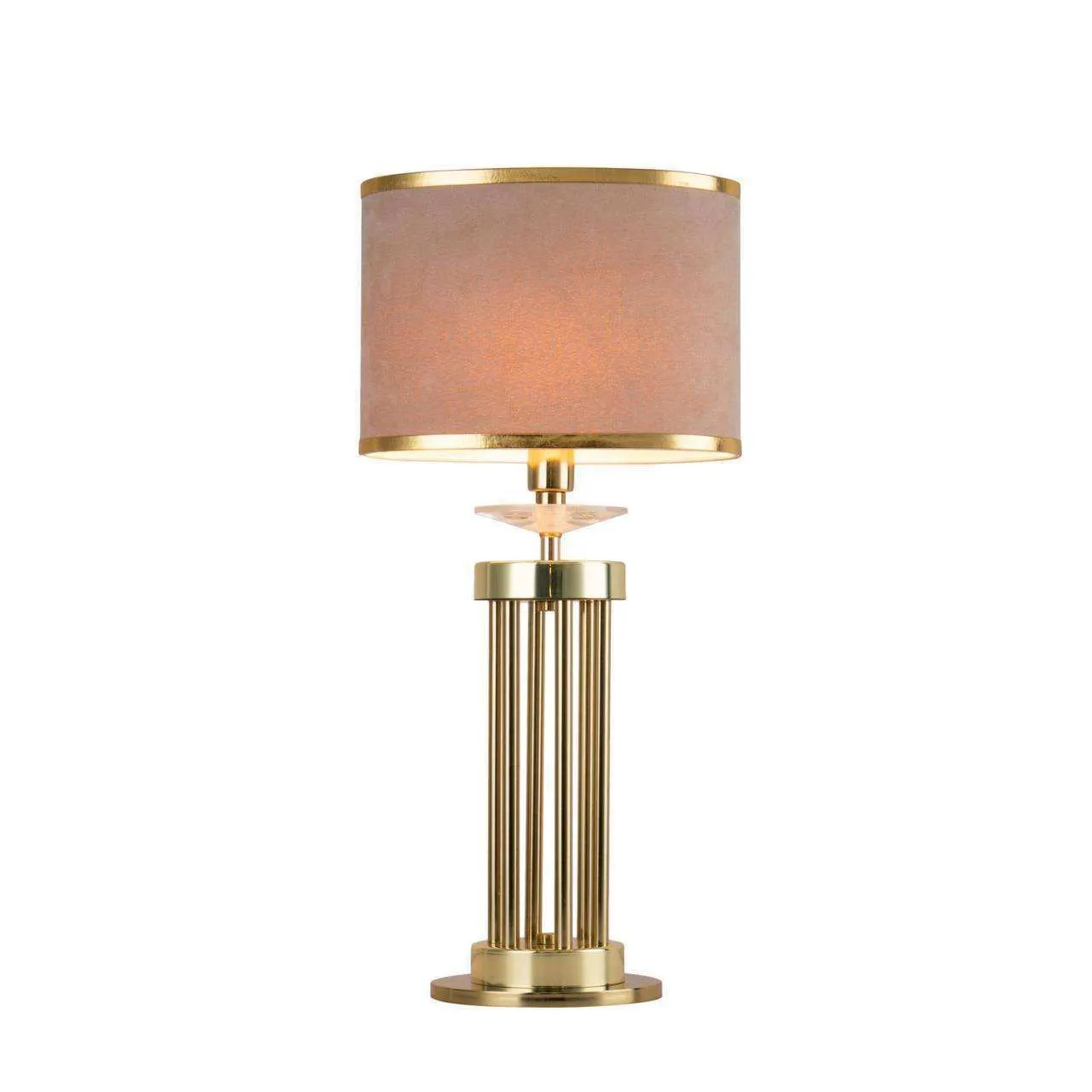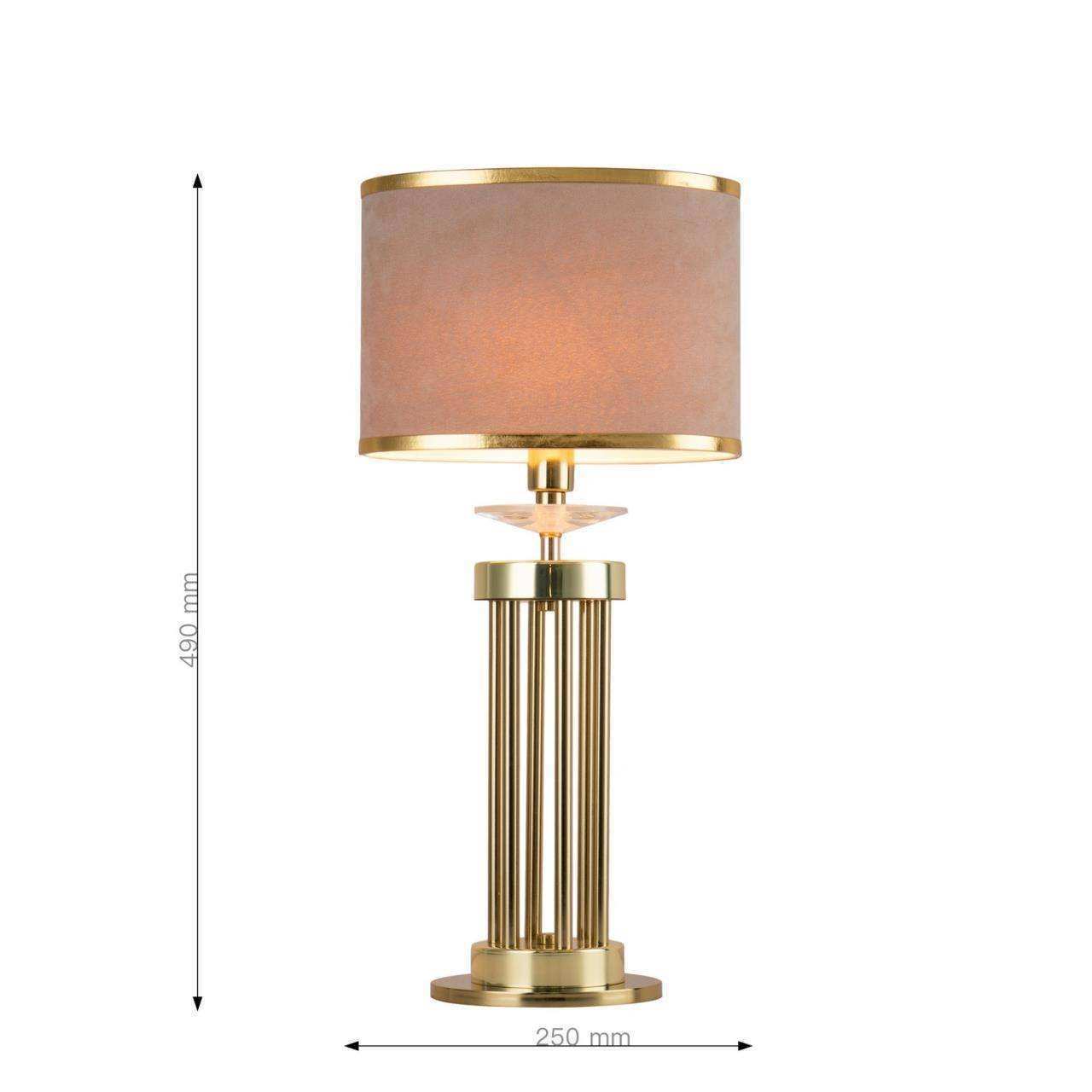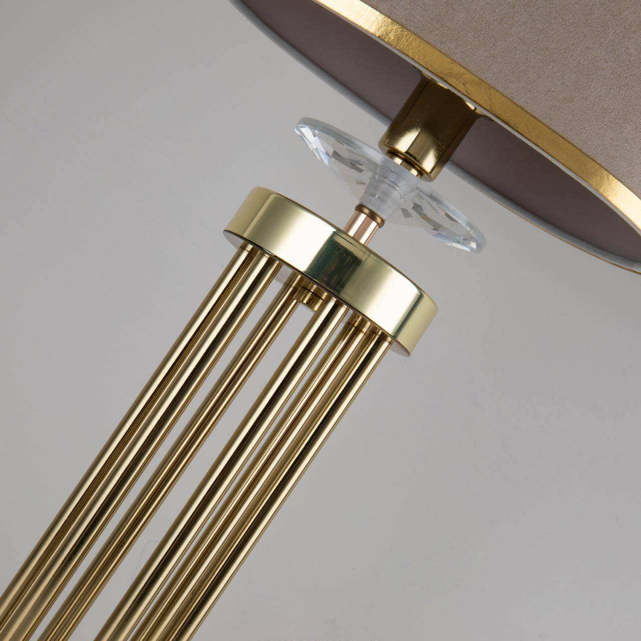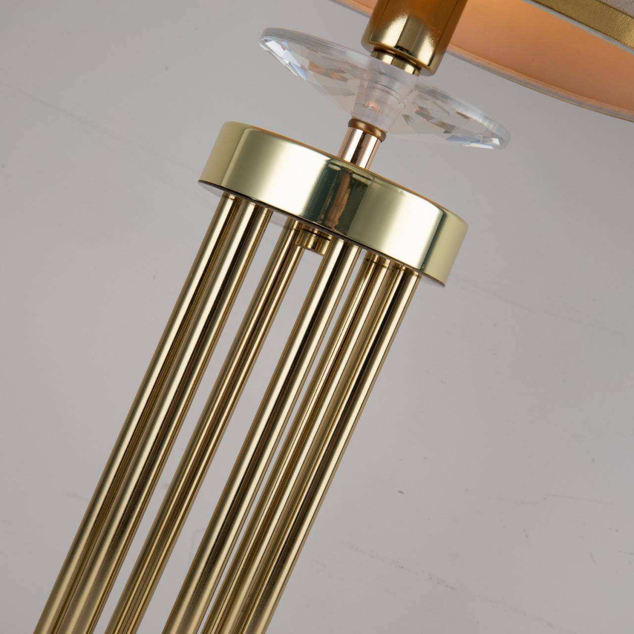 Каркас цвета латунь, абажур из бежевой бархатистой ткани с золотой тесьмой
