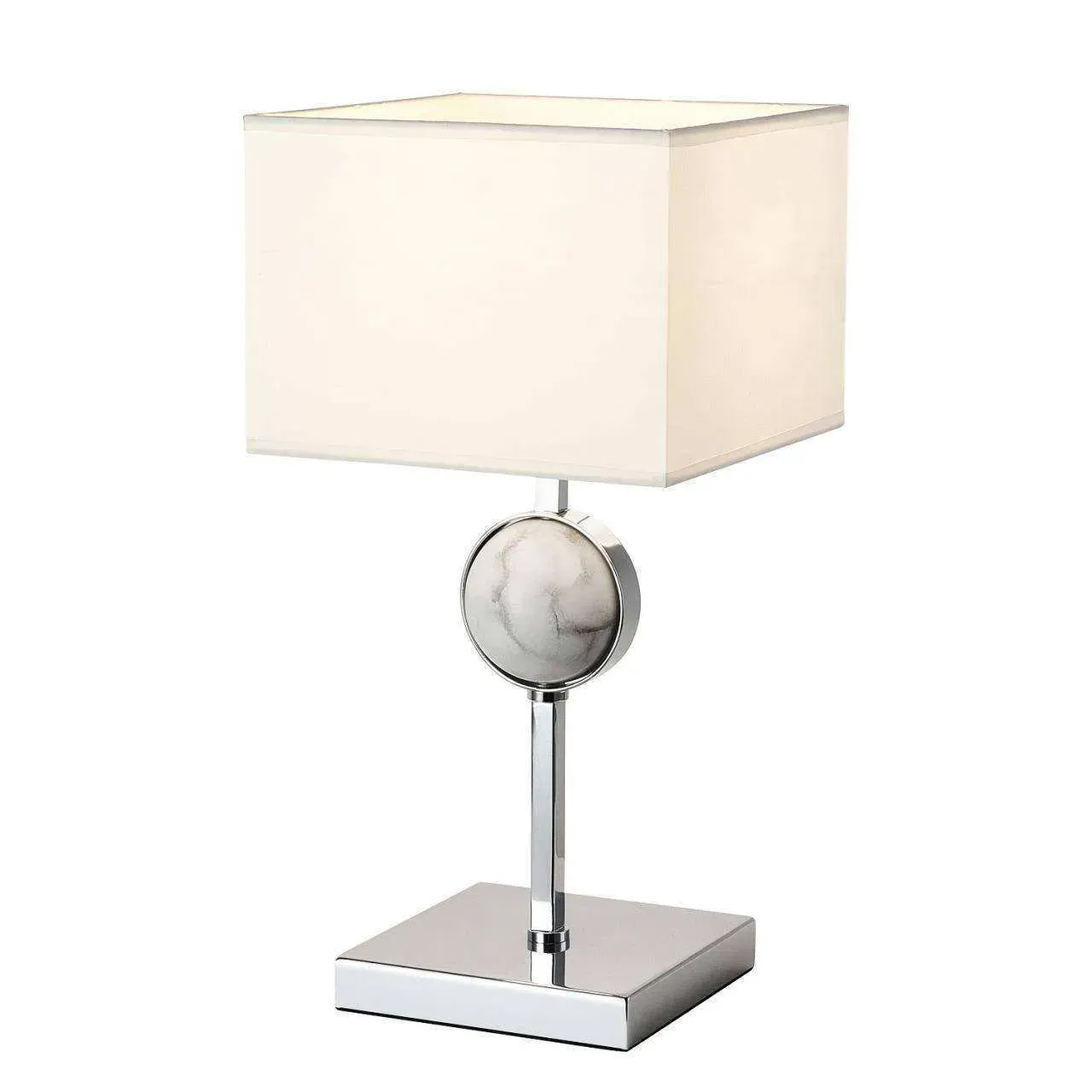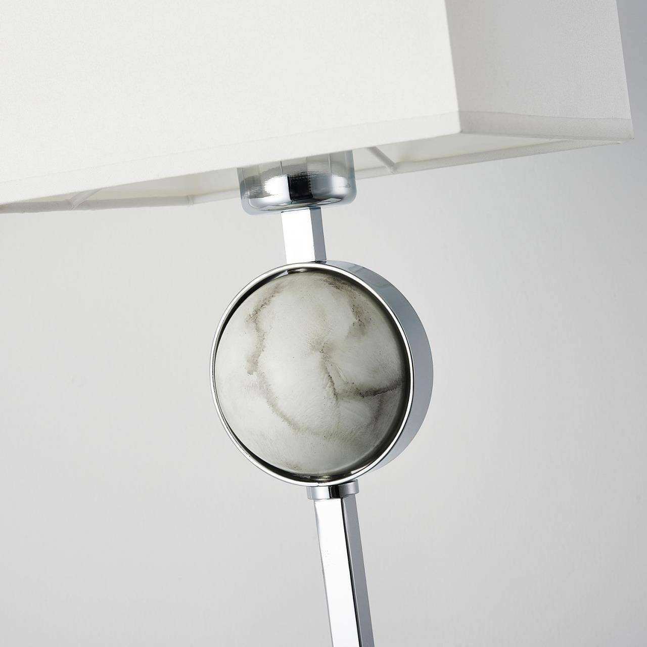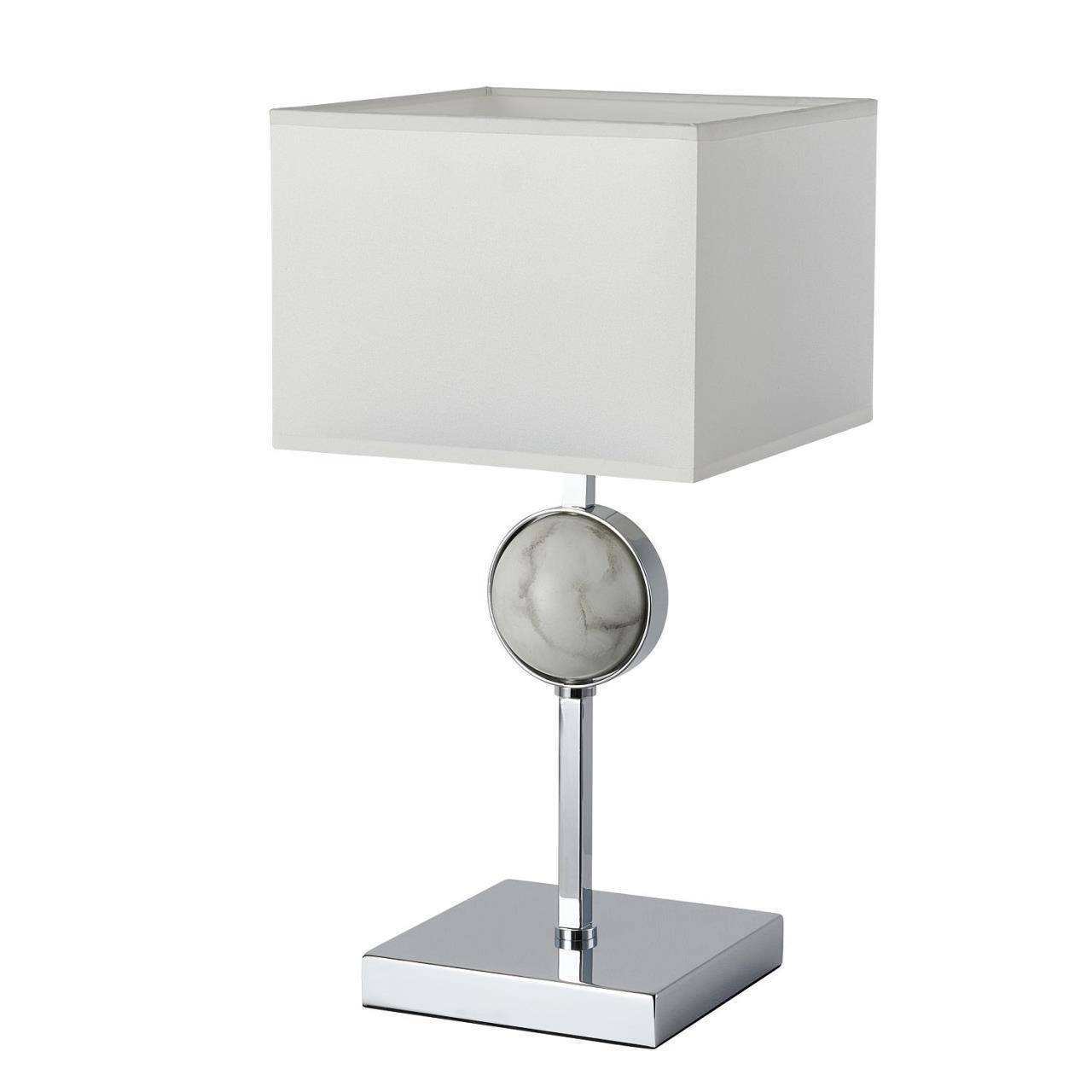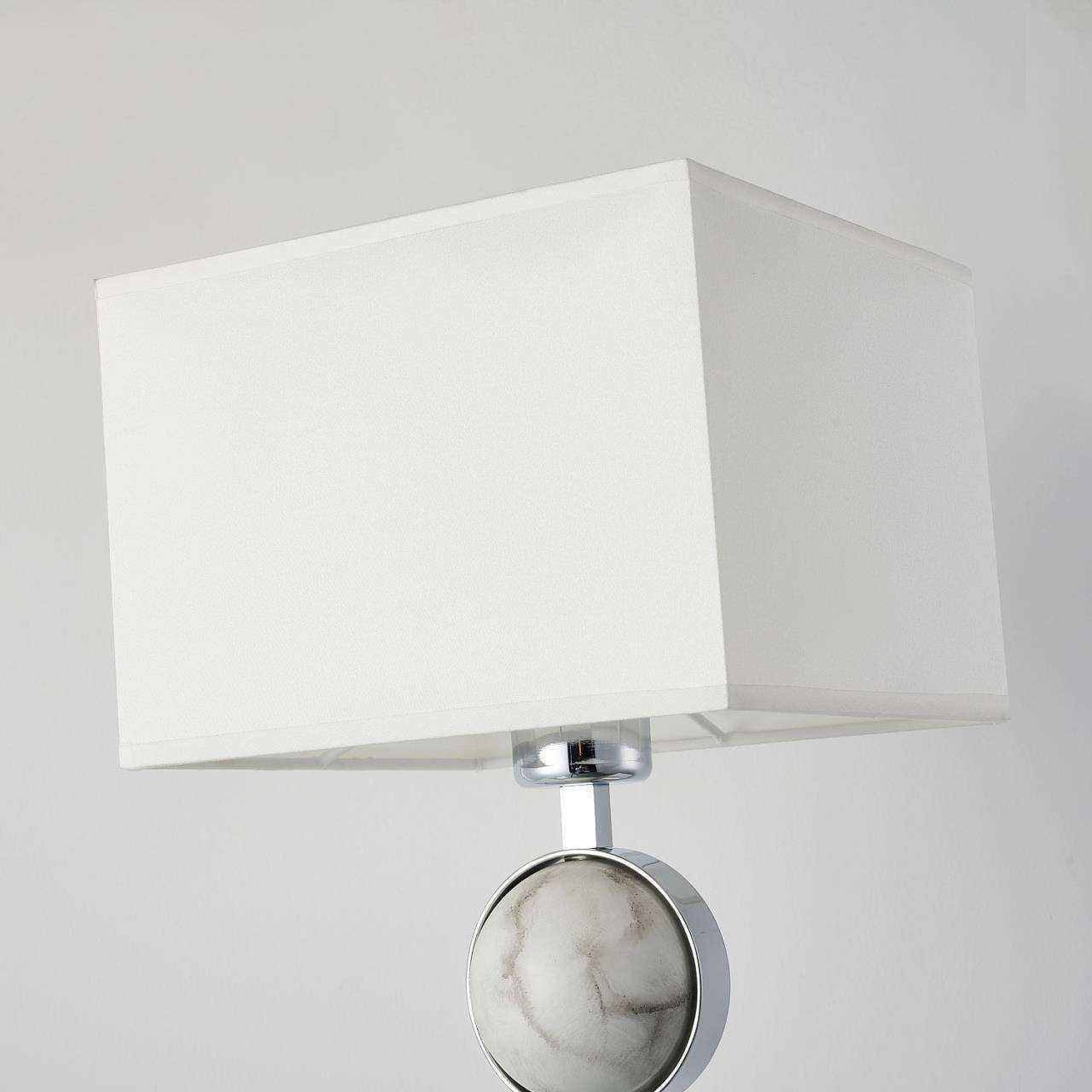 Каркас цвета хром, плафон из белой ткани, декор - имитация белого мрамора