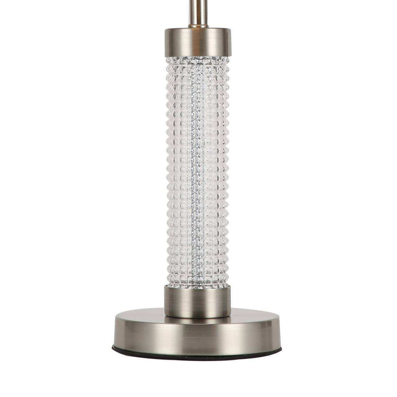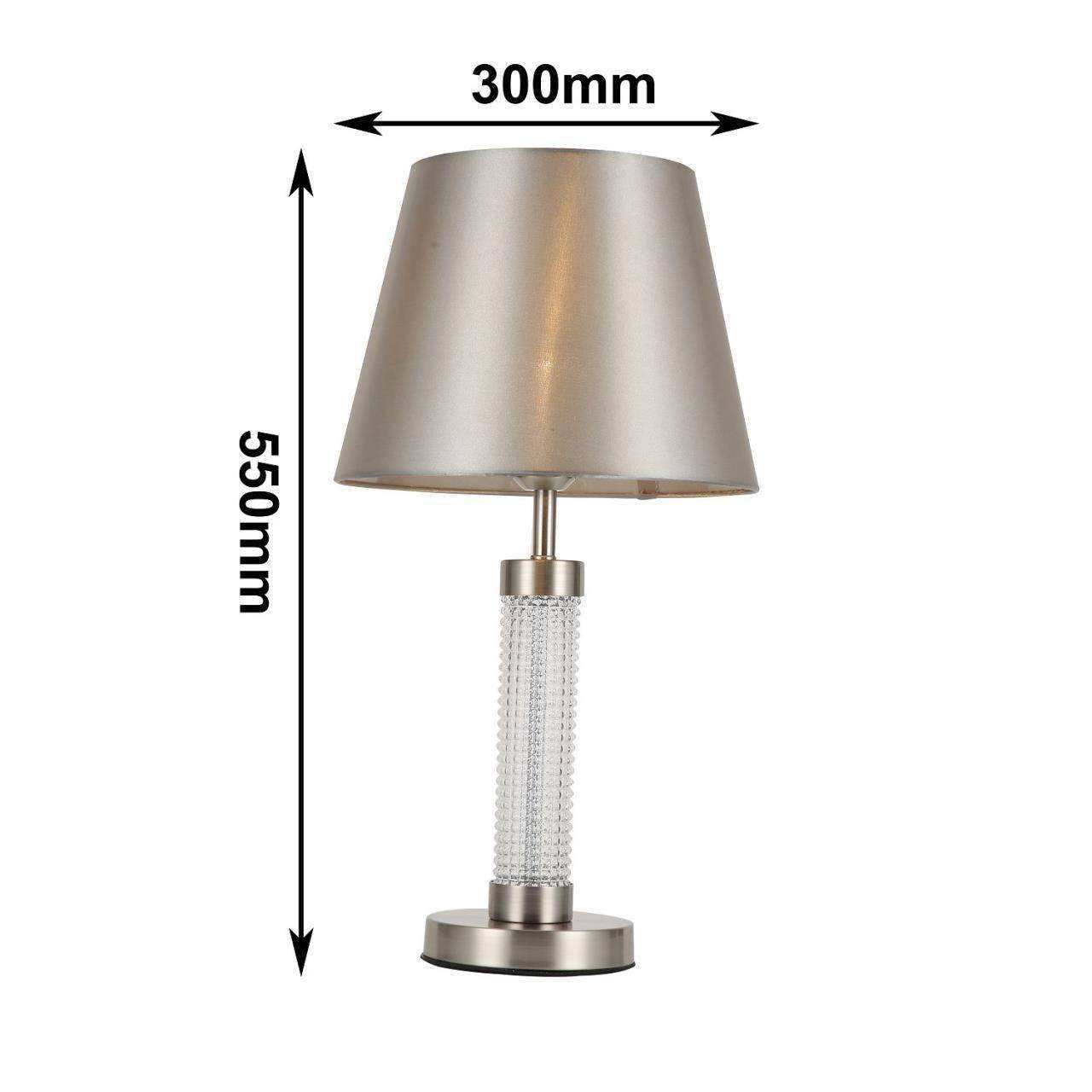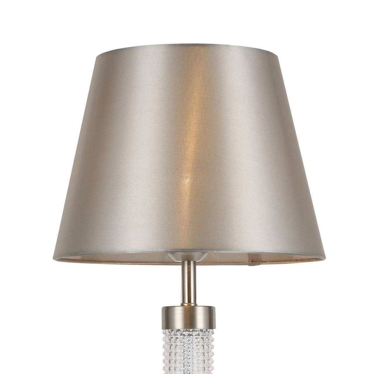 Каркас цвета никеля, плафон из серой атласной ткани, декоративный стеклянный элемент