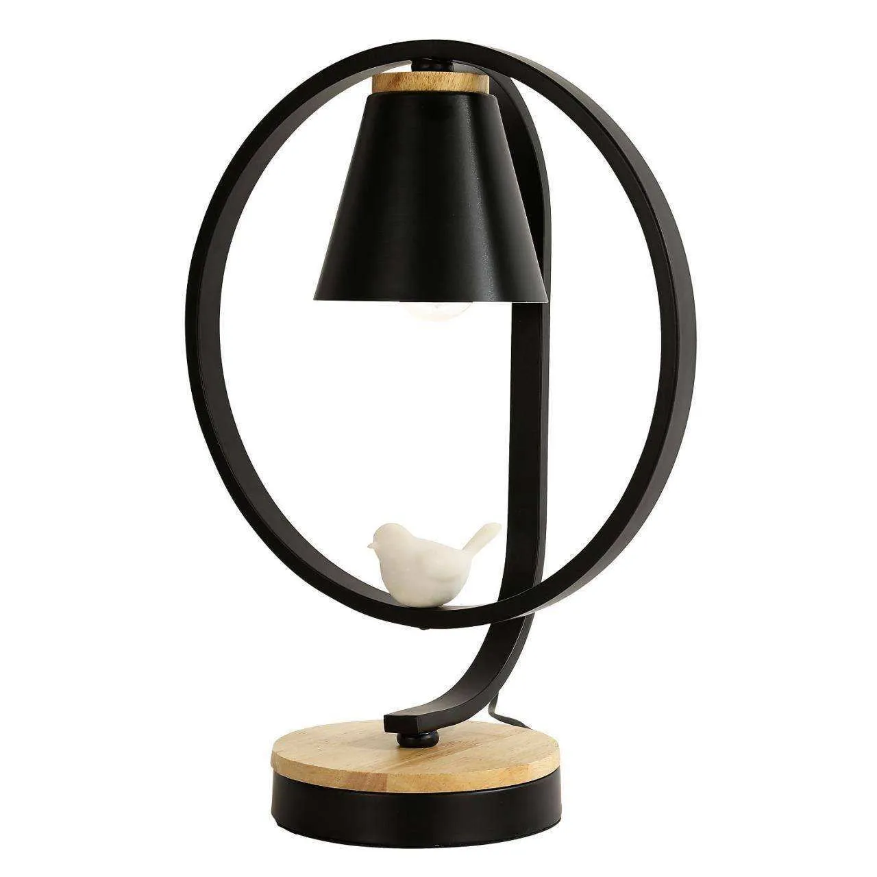 Каркас матового черного цвета, декоративные вставки из светлого дерева, декоративный элемент в виде белой акриловой птицы
