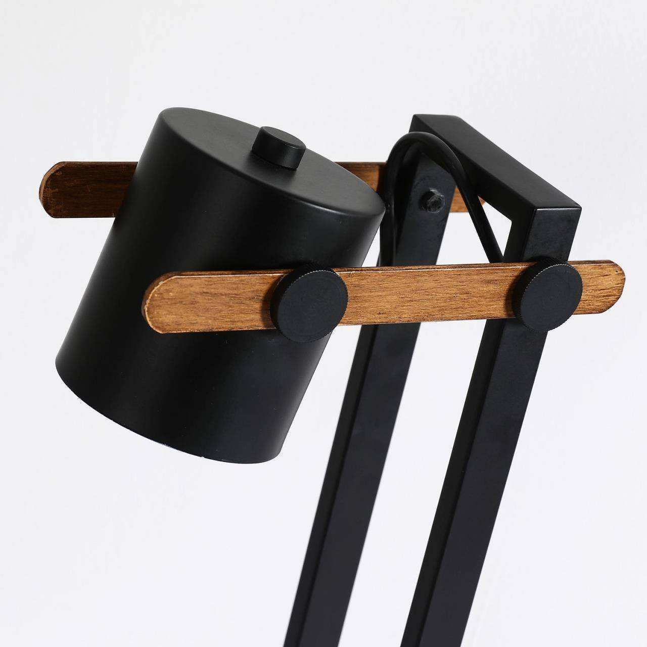 Каркас черного цвета с декором под цвет дерева, поворотный плафон