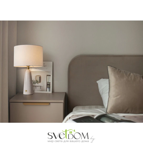 Белый тканевый абажур, мраморное основание в 4 цветовых решениях. Лампа E27 (в комплекте). Сенсорное управление. Элегантный дизайн с рассеивателем для мягкого света. Стильный аксессуар, который подчеркнет вашу индивидуальность