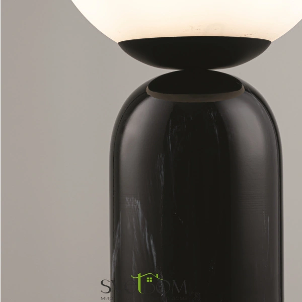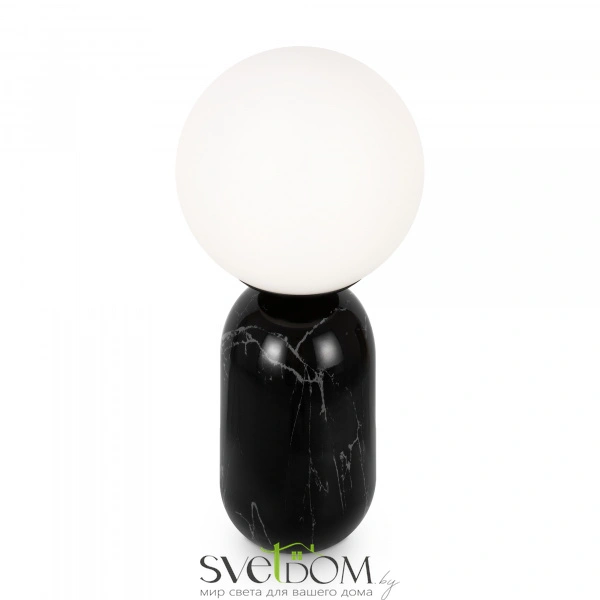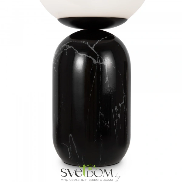 Материал основания — натуральный мрамор с уникальным рисунком. цвета — белый, черный. шаровидный плафон. функция touch-dimming позволяет регулировать яркость света. источник света — лампа с цоколем e14.