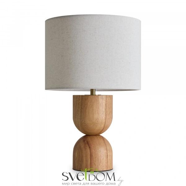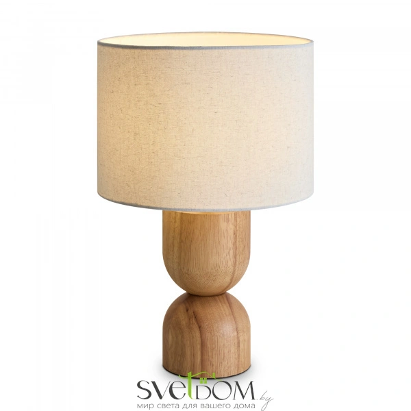 Основание светильника — натуральное дерево, цвет — бежевый. Тканевый абажур из натурального льна. Трендовый светильник в стиле эко. Источник света — лампа с цоколем E27. Подходят лампы Voltega 2427, 7065, 7134 и 7045.