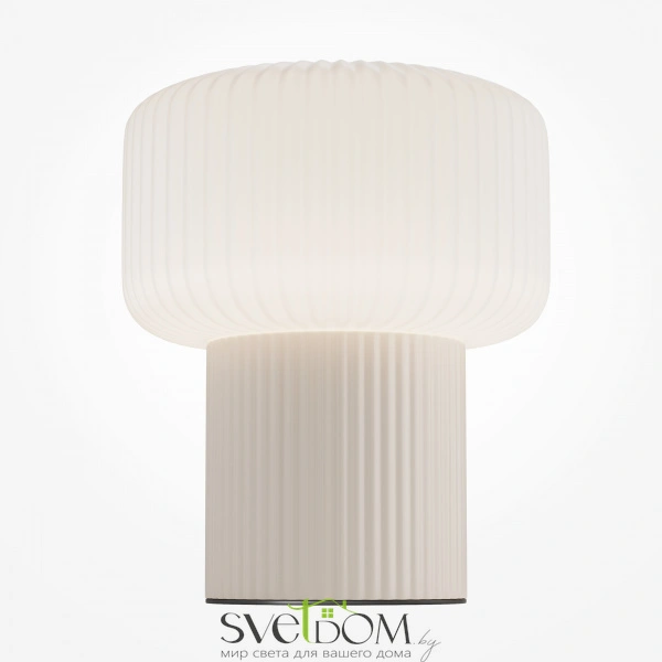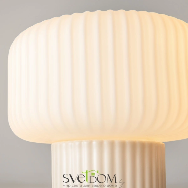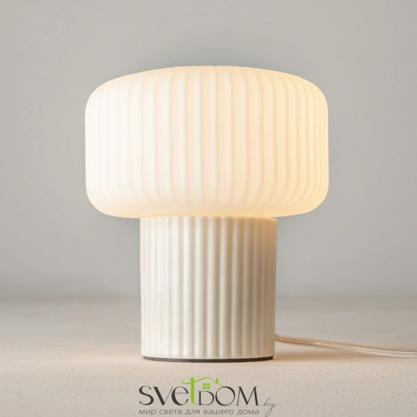 В дизайне серии Omaggio объединены тренды на рельефность и форму "грибочка".  Основание и плафон украшены вертикальным рельефом. Сочетание матовых текстур белого стеклянного плафона и керамического основания. В серии два пастельных оттенка: кремово-белый (RAL 9001) или серебристо-серый (RAL 7001). Цоколь сменного источника света — G9.  Трендовые дизайн и цветовая палитра делают Omaggio идеальным дополнением для любого пространства — будь то гостиная, рабочий стол или прикроватная тумбочка.