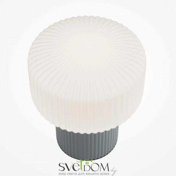 В дизайне серии Omaggio объединены тренды на рельефность и форму "грибочка".  Основание и плафон украшены вертикальным рельефом. Сочетание матовых текстур белого стеклянного плафона и керамического основания. В серии два пастельных оттенка: кремово-белый (RAL 9001) или серебристо-серый (RAL 7001). Цоколь сменного источника света — G9.  Трендовые дизайн и цветовая палитра делают Omaggio идеальным дополнением для любого пространства — будь то гостиная, рабочий стол или прикроватная тумбочка.