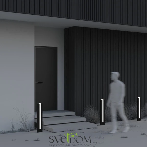 Ландшафтные светильники. Корпус — алюминий и акрил, цвет — графит. Отличительная черта — центральная светящаяся полоса. LED-технология, 10 Вт, теплый свет 3000К, CRI>80. Степень защиты — IP65. Созданы для формирования геометрически выверенных световых акцентов в садовом дизайне.