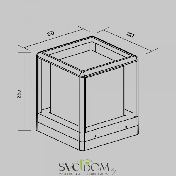 Алюминиевый корпус, цвет - графит. Белый акриловый рассеиватель. Источник света - лампа с цоколем Е27. Высокая степень защиты - IP65. Идеальная подсветка для заборов и различных колонн.
