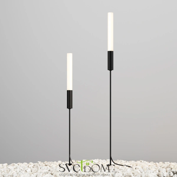 Ландшафтные светильники. Материал — алюминий, цвет — гранит. Дизайн: вытянутая ножка с цилиндрическим плафоном. LED-технология, 3 Вт, теплый свет 3000К. Степень защиты — IP65. Созданы для имитации живого пламени в современном ландшафтном дизайне.
