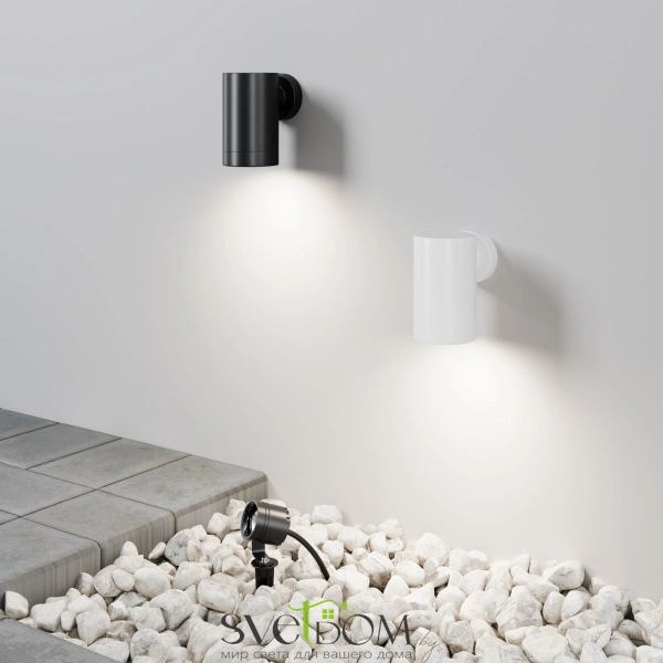Материал арматуры - алюминий, цвет - графит, черный и белый. Источник света ландшафтной модели - LED (3000К), мощность 3Вт, высокая степень защиты от пыли и влаги IP65, высокий индекс цветопередачи >97. Источник света настенных моделей - лампа с цоколем GU10, мощность 10Вт, повышенная степень защиты от пыли и влаги IP54