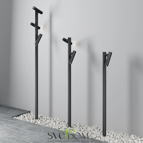 Материал арматуры - алюминий, цвет - черный. LED-источник света с цветовой температурой 3000К. Три размера с разной мощностью - 10, 20 и 30Вт. Повышенная степень защиты от пыли и влаги IP65. Ландшафтный светильник оснащен спотами с поворотным механизмом для создания акцентов светом.