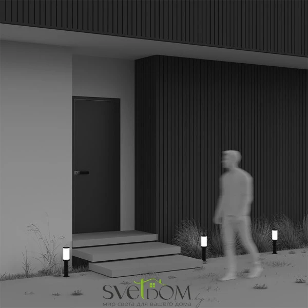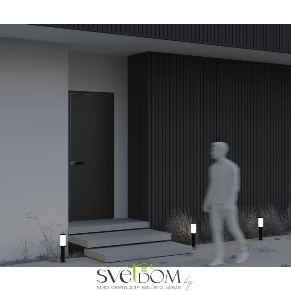 Материал арматуры - алюминий, цвет - черный. Плафон из пластика. Источник света - лампа с цоколем E27, мощность 23Вт. Высота 800 мм. Настенный и ландшафтные светильники для уличного использования.