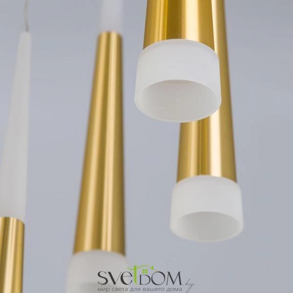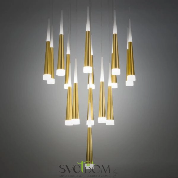 Citilux Вегас CL227162 LED Люстра каскадная Золото — Роскошная подвесная светодиодная слюстра с 16-ю конусными плафонами черного цвета из коллекции «Вегас» общей мощностью в 112 Вт.