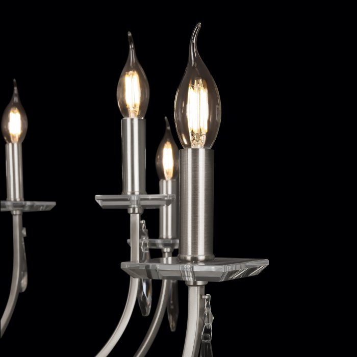 Напоминая об актуальности американской классики, серия forte объединяет традиционный дизайн и современную лаконичность форм. металлическая арматура представлена в двух благородных оттенках на выбор: латунь и никель. плавный изгиб рожков подчеркнут элегантными хрустальными розетками и классической формой плафона в виде свечи. открытые источники света обеспечивают яркое освещение. торшер и настольная лампа, предназначенные для зональной подсветки, имеют тканевые абажуры оттенка кремовый шампань в латунной вариации и белые в цвете никель. декор серии – прозрачные подвесы из высококачественного хрусталя – добавляет дизайну особый шарм. серия идеально дополнит интерьеры в стиле неоклассика, ар-деко, модерн. широкая линейка позволяет создавать различные световые сценарии: подвесные люстры на 6, 8 и 12 рожков, бра на 1 и 2 рожка, торшер и настольная лампа обеспечат фоновое и локальное освещение.