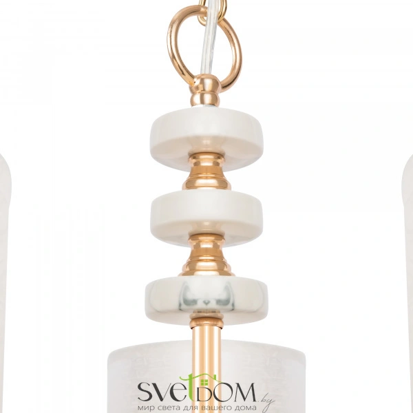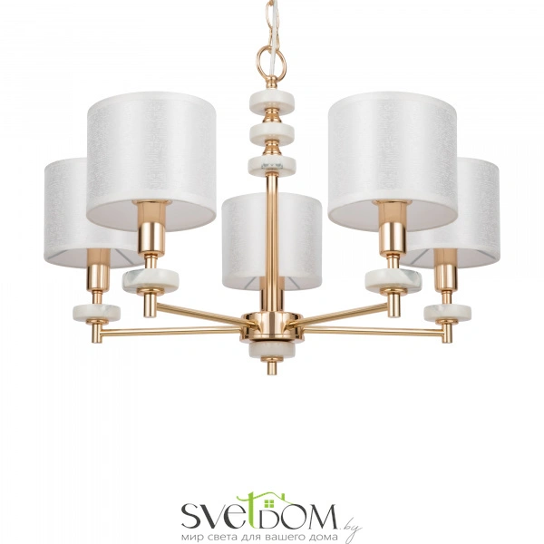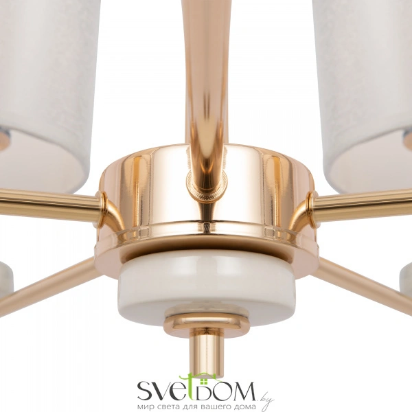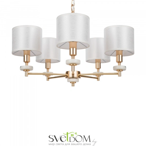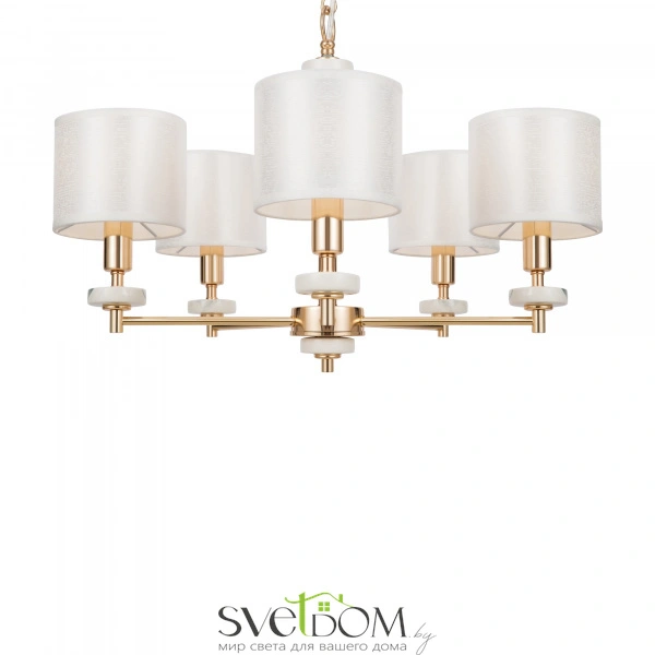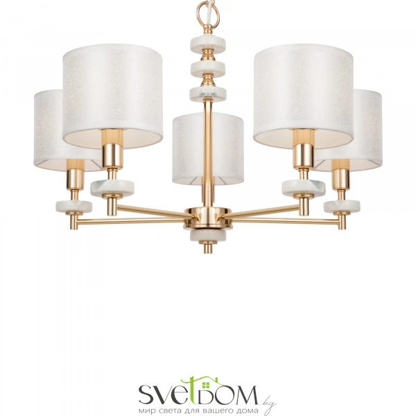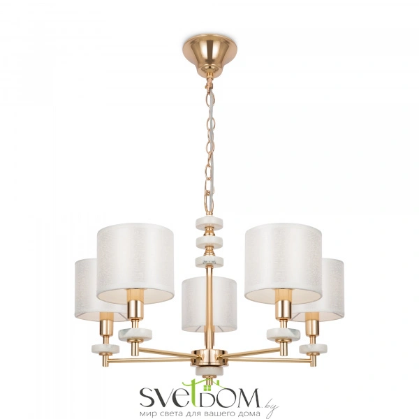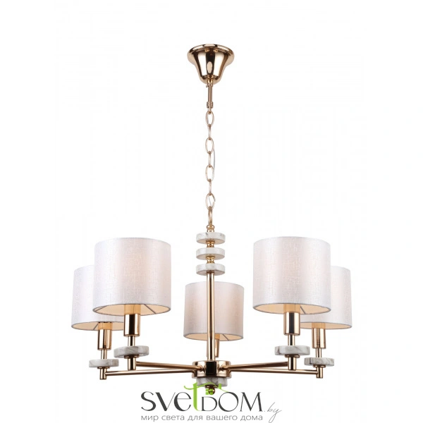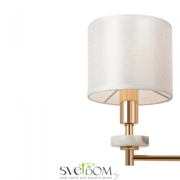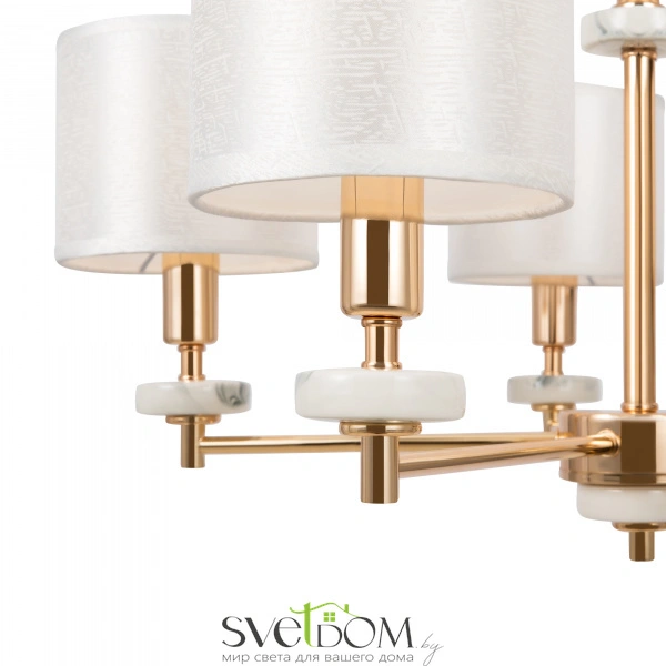 Серия светильников в современном стиле. арматура выполнена из металла золотого цвета и дополнена декоративными элементами из керамики, имитирующими мрамор. абажуры в форме цилиндров выполнены из текстиля на пвх кремового цвета. светильники tiana могут дополнить интерьеры частных апартаментов, а также гостиниц и ресторанов. серия состоит из люстр на 8 и 5 рожков, настольной лампы и бра.