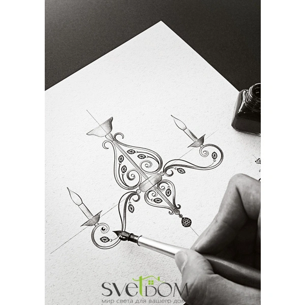 Флористическая тематика прослеживается в декоративных элементах и силуэтах светильников серии. Изящные витиеватые линии каркаса украшены граненными кристаллами в форме лепестков. Арматура изготовлена из металла бронзового цвета. Блюдца на рожках имеют небольшие просечные отверстия, через которые проходит свет ламп, выявляя ажурный контур. Высоту люстр возможно изменять, регулируя длину цепи.