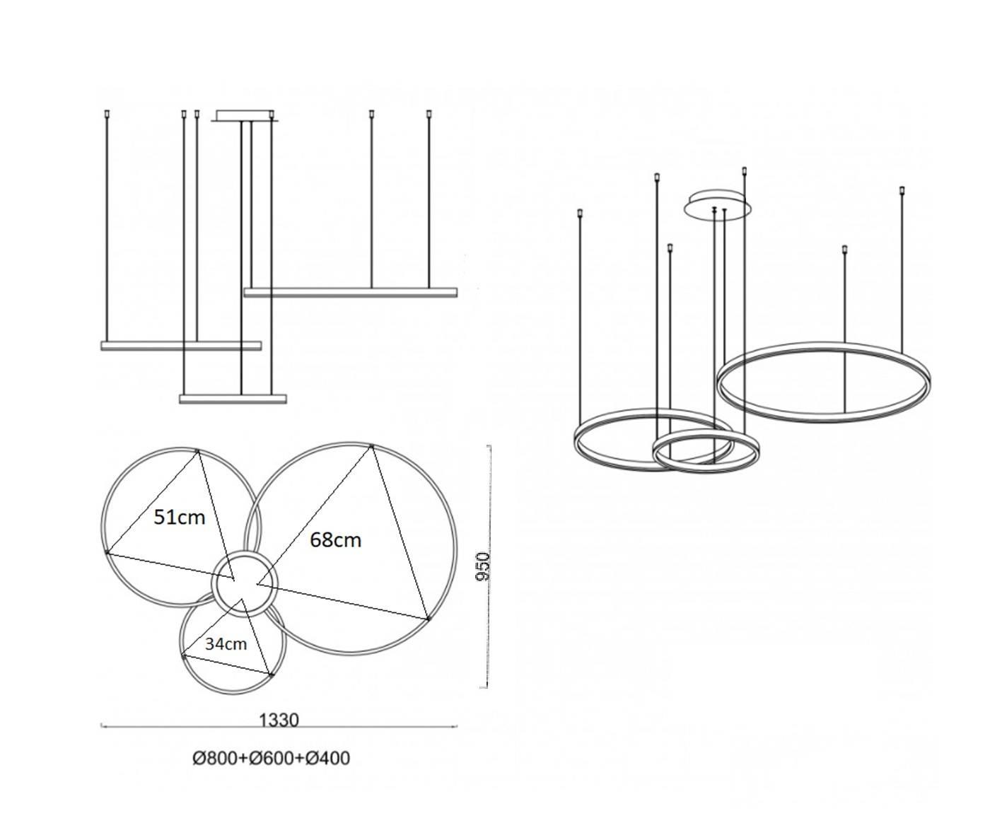 Подвес тор матовое золото w133.5*95(d80+60+40) h150 led 100w (3000k) диммируемый, с пультом ду