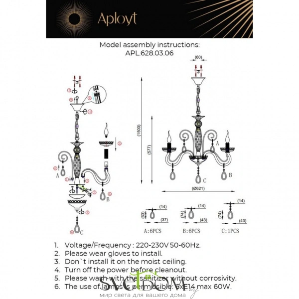 Люстры подвесныеAPL.628.03.06 Aployt | Svetdom.by