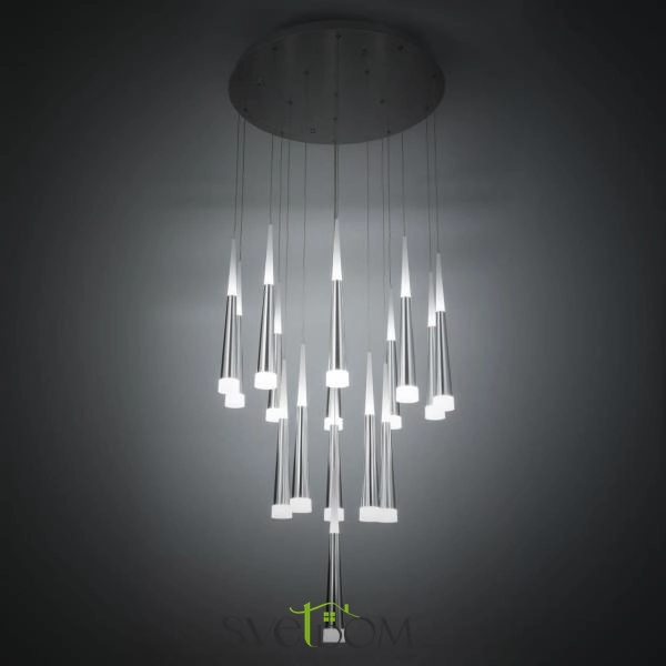 Citilux Вегас CL227160 LED Люстра каскадная Алюминий — Роскошная подвесная светодиодная слюстра с 16-ю конусными плафонами цвета хром из коллекции «Вегас» общей мощностью в 112 Вт.
