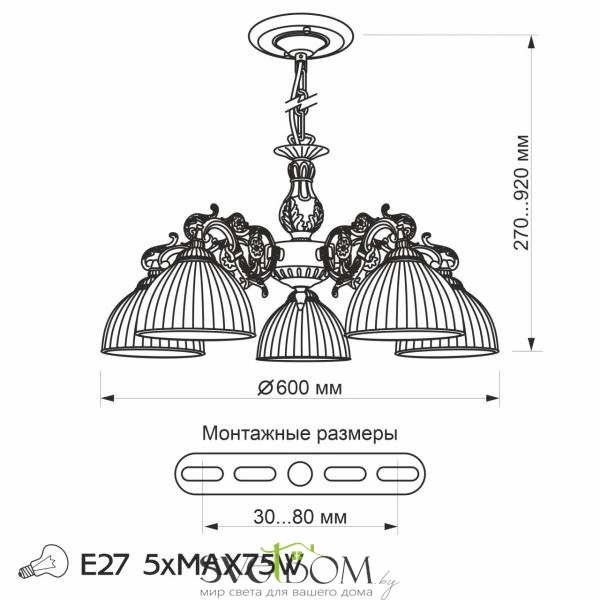 Citilux Адриана CL405253 Люстра подвесная Бронза — Люстра подвесная Ситилюкс пятирожковая, выполнена в классическом стиле.