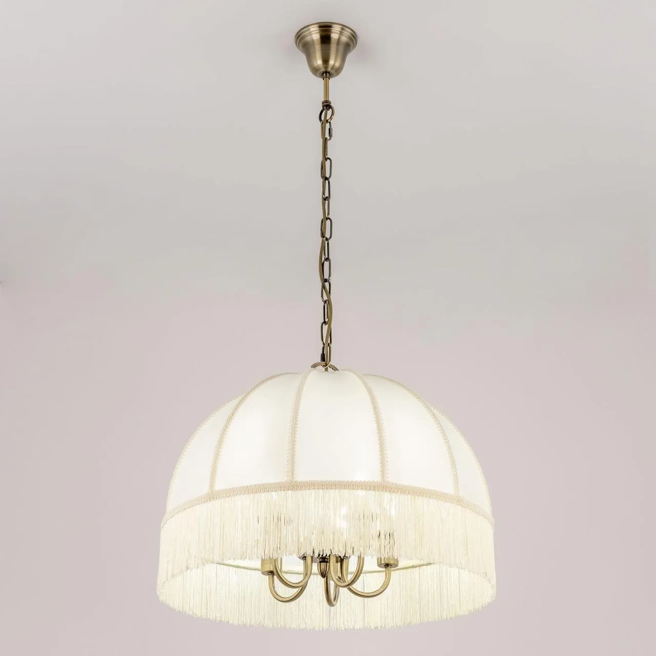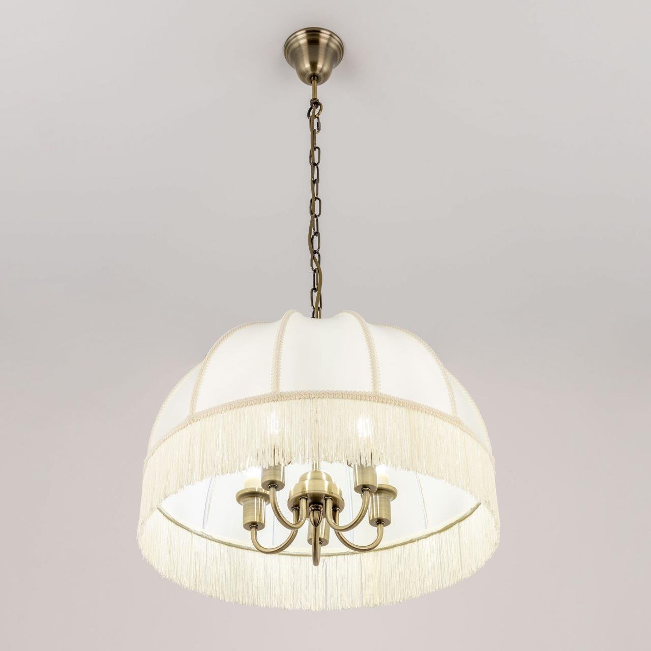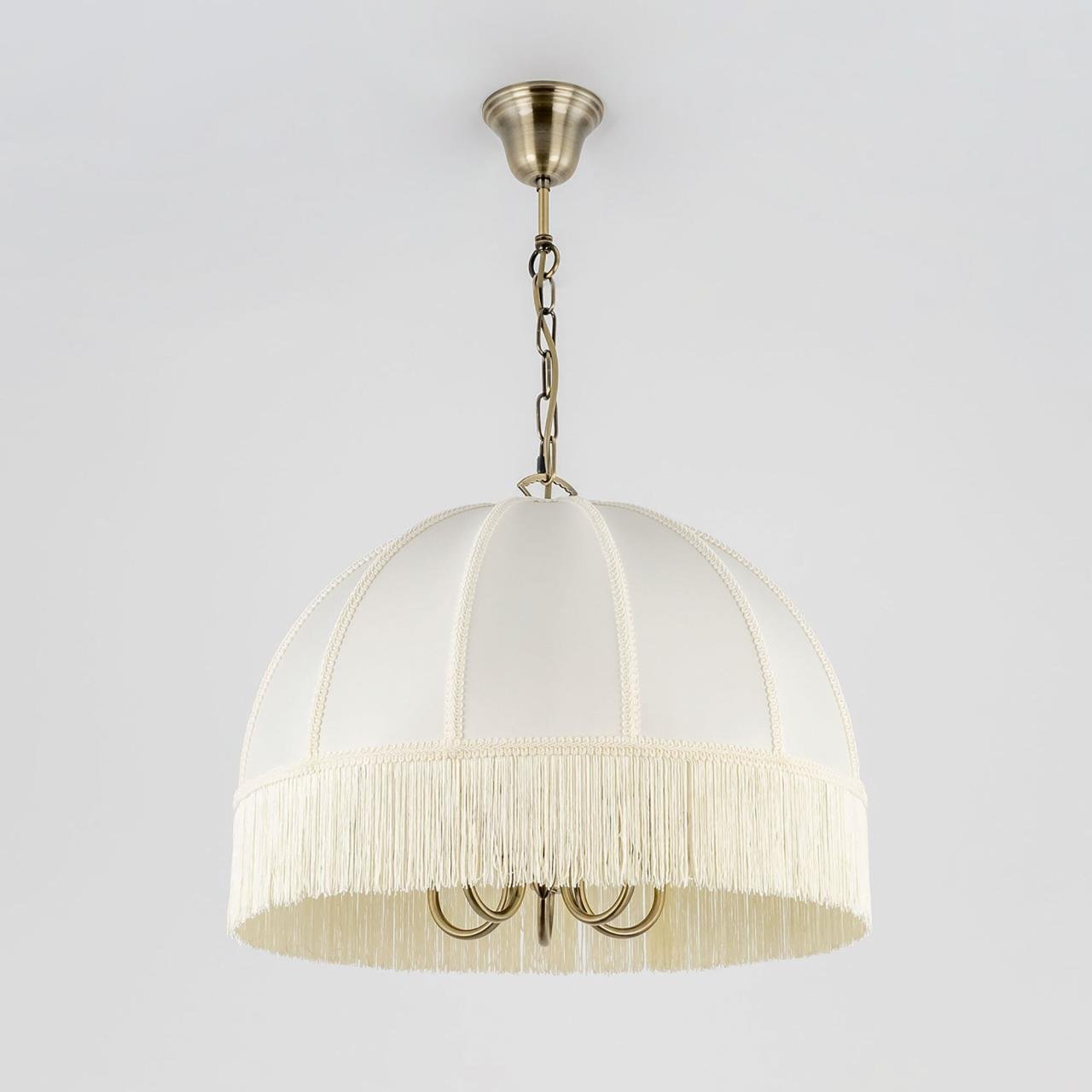 Citilux Базель CL407151 Люстра подвесная с бежевым абажуром — Подвесная пятирожковая люстра на цепи Базель с классическим абажуром.