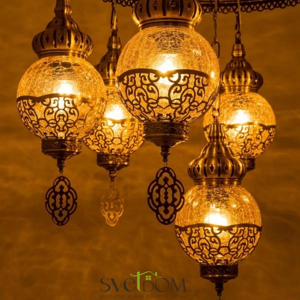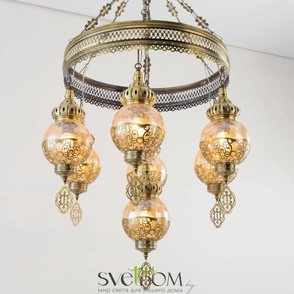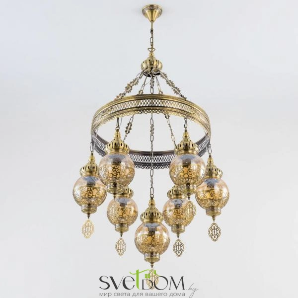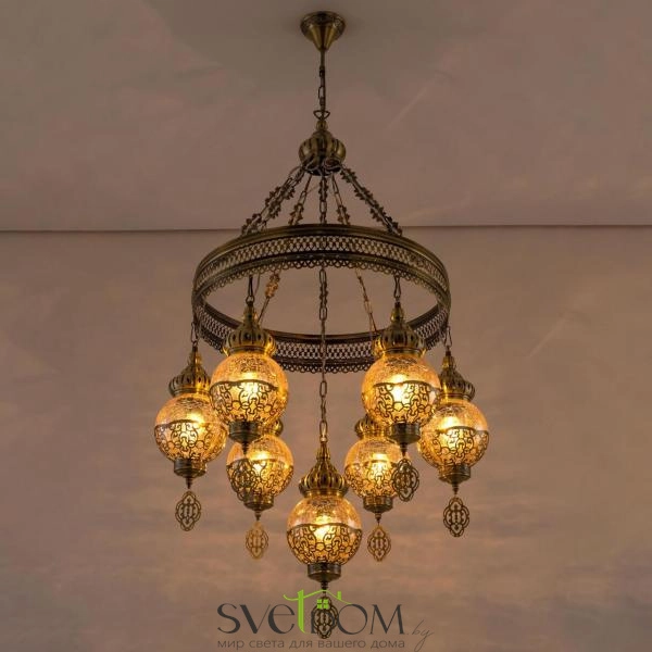 Citilux Каир CL419163 Люстра подвесная Бронза — Восточная каскадная люстра Каир с семью подвесными плафонами.