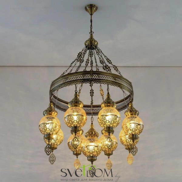 Citilux Каир CL419183 Люстра подвесная Бронза — Восточная каскадная люстра Каир с девятью подвесными плафонами.