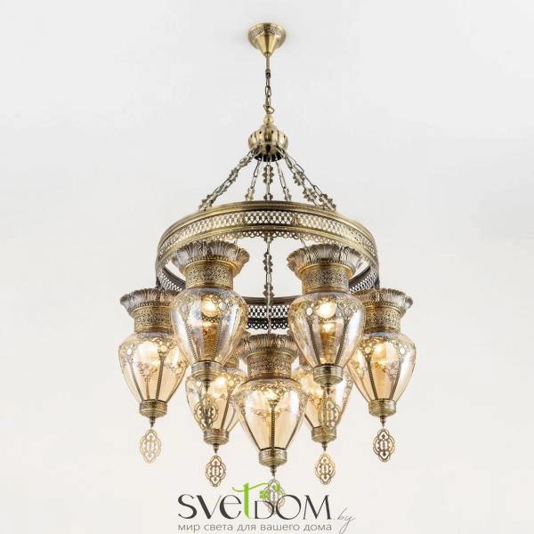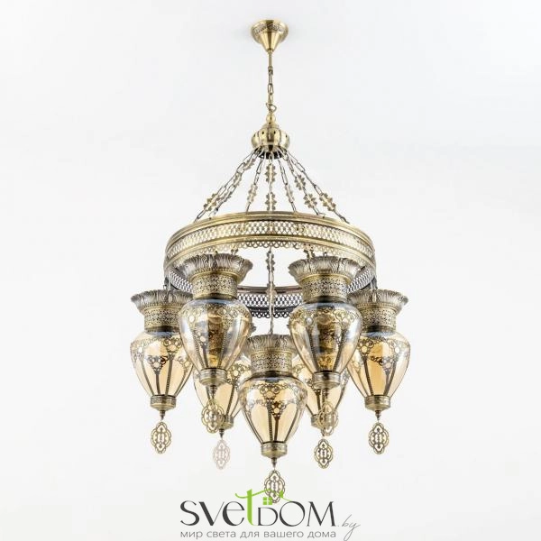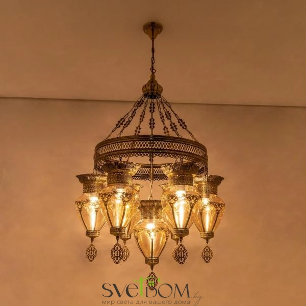 Citilux Каир CL419263 Люстра подвесная Бронза — Восточная каскадная люстра Каир с семью подвесными плафонами.