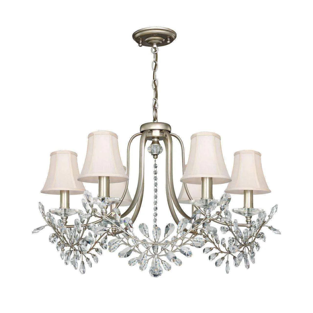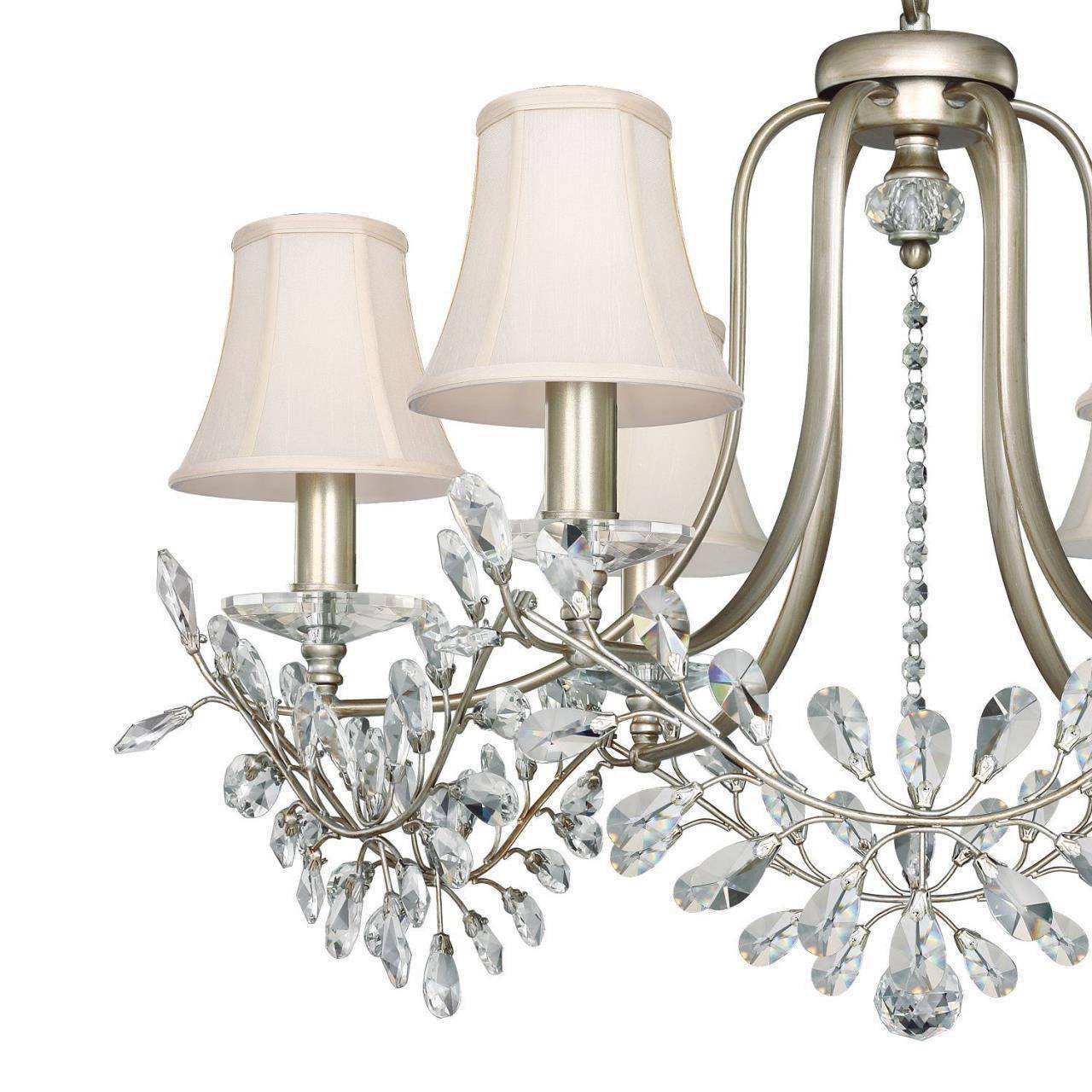 Каркас цвета античного серебра, абажуры из кремовой ткани, хрусталь высшего качества