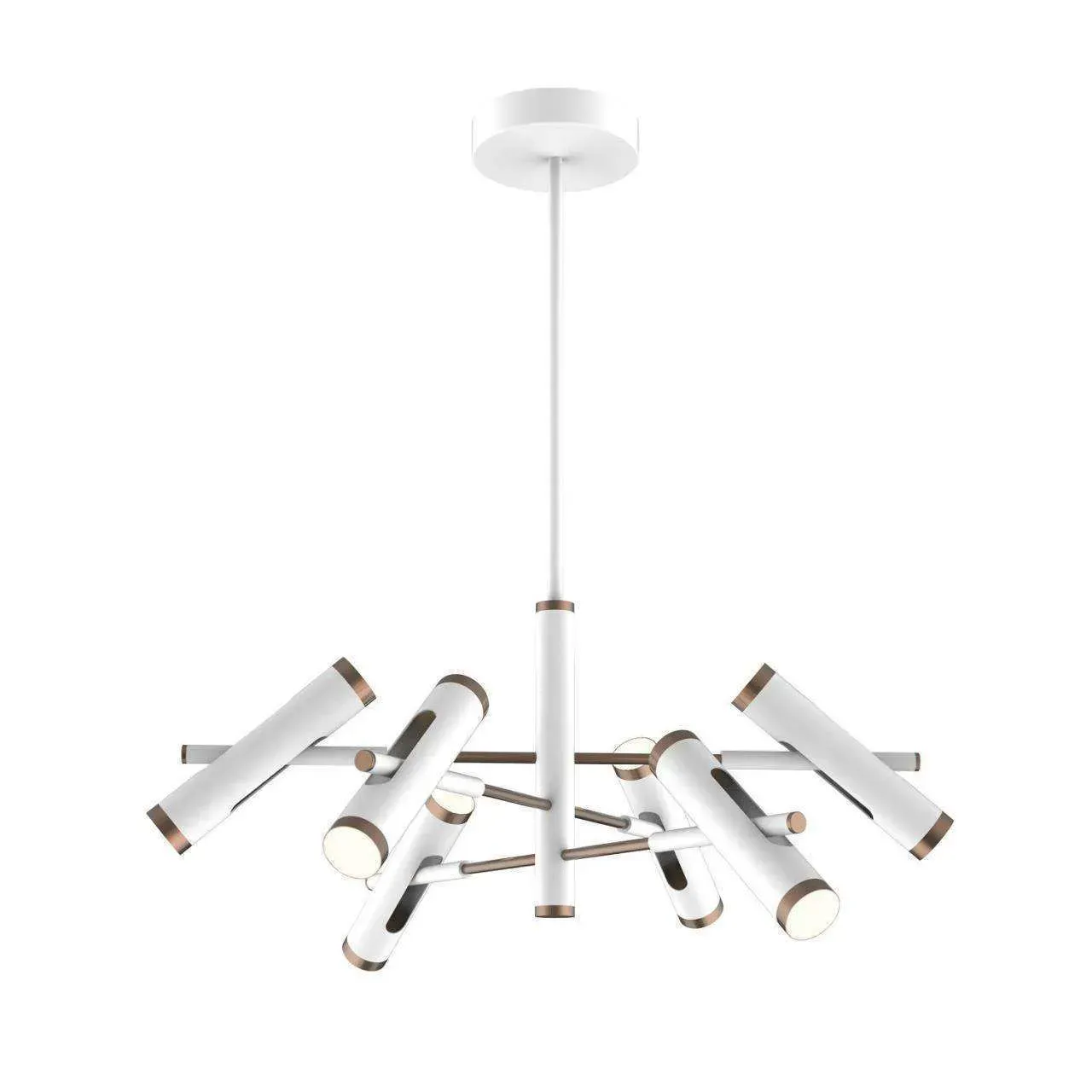 металл белого матового цвета, элементы окрашены в золотисто-коричневый цвет, все плафоны поворотные, модули LED с двух сторон плафона