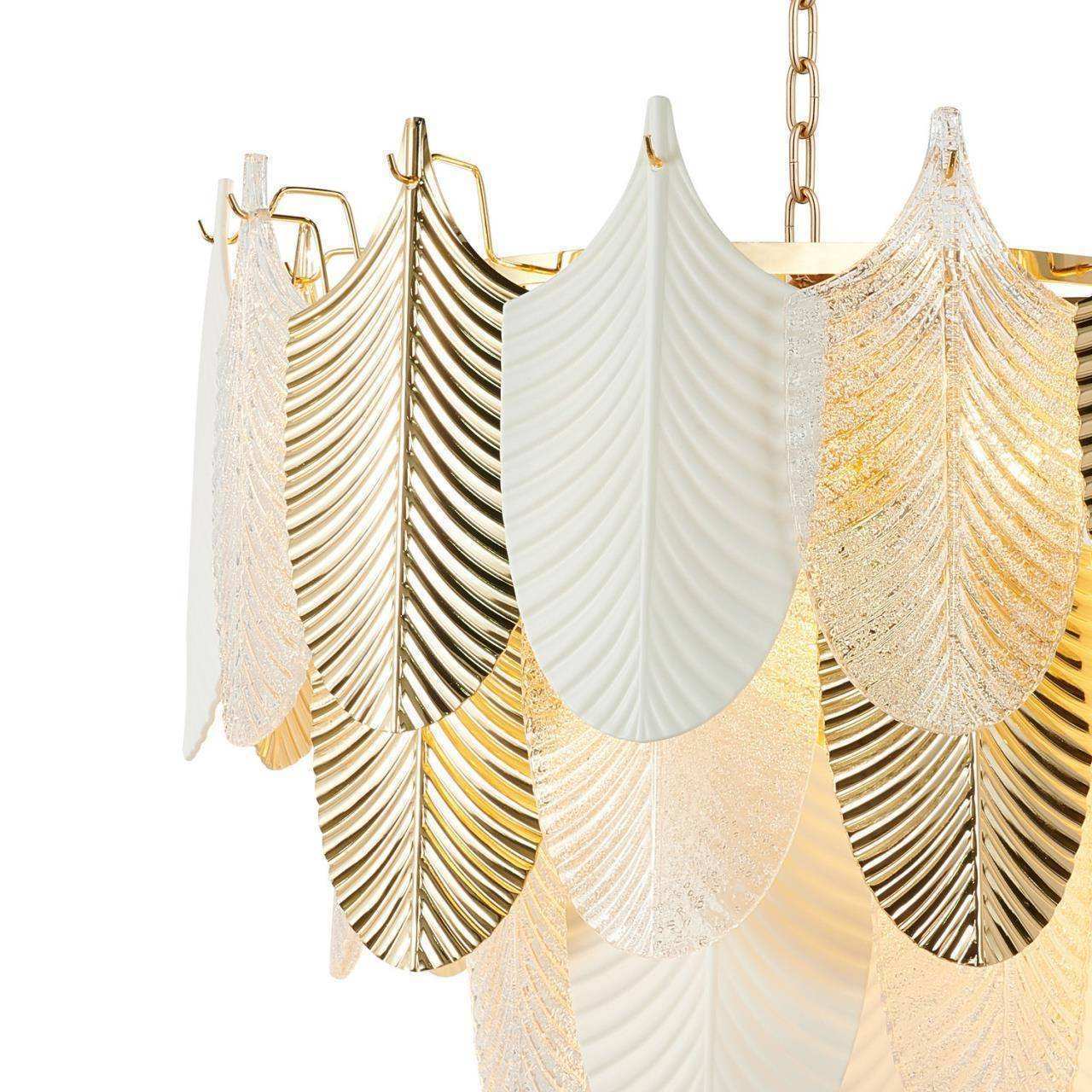 Каркас золотого цвета, декоративные элементы из белого фарфора, полупрозрачного стекла и золотого металла