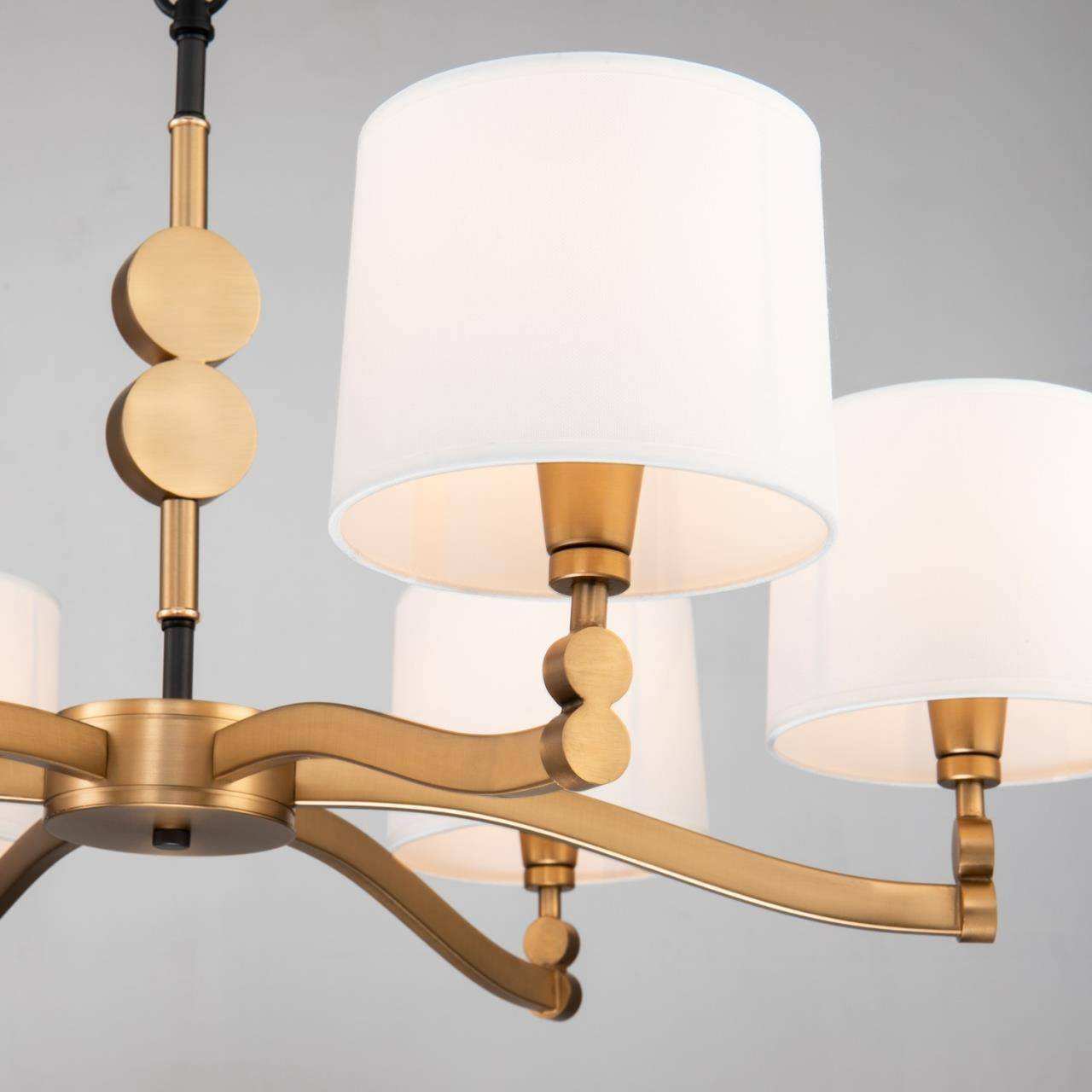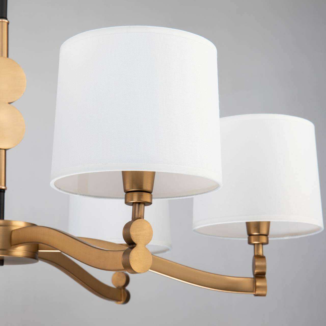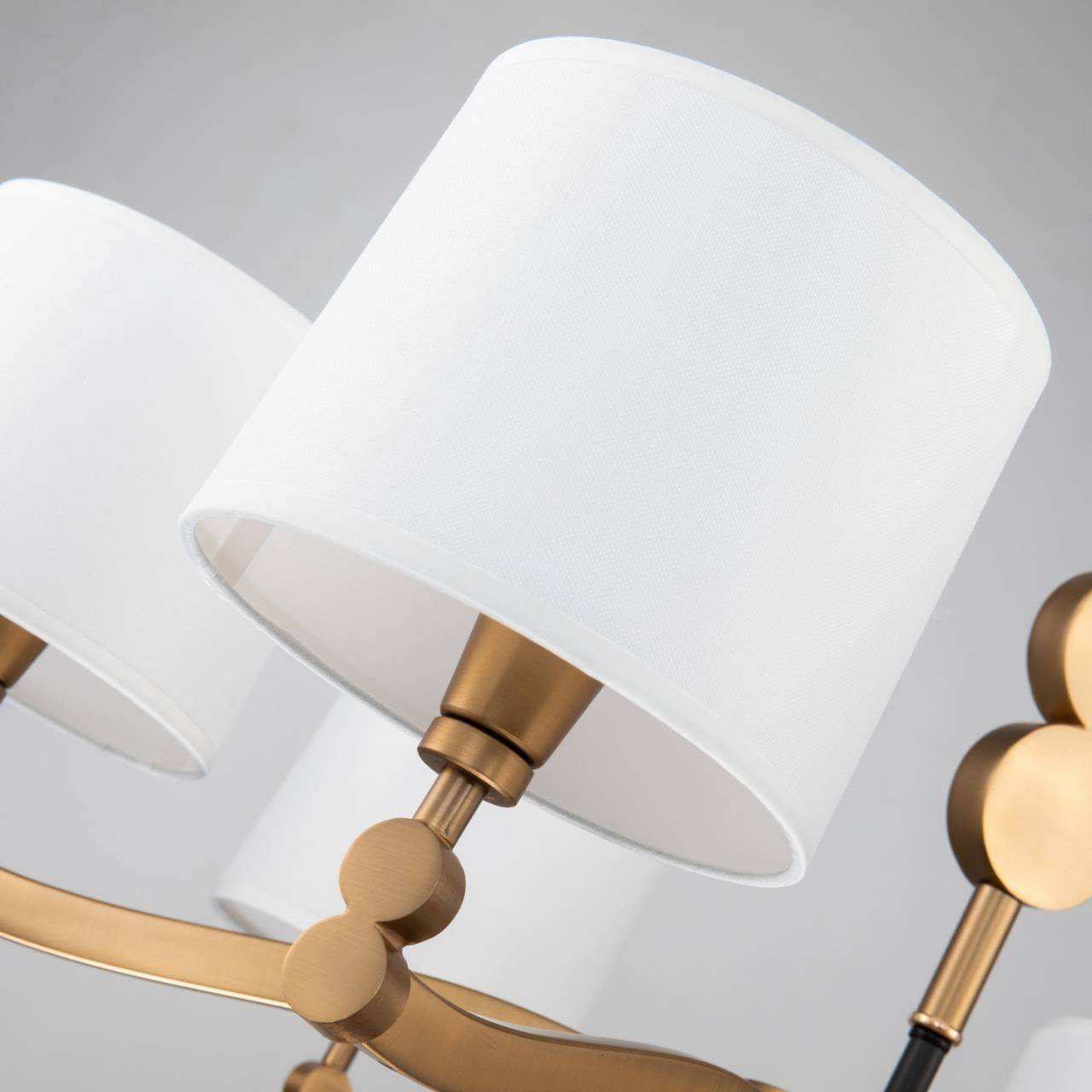 Каркас цвета латунь, абажуры из белой атласной ткани