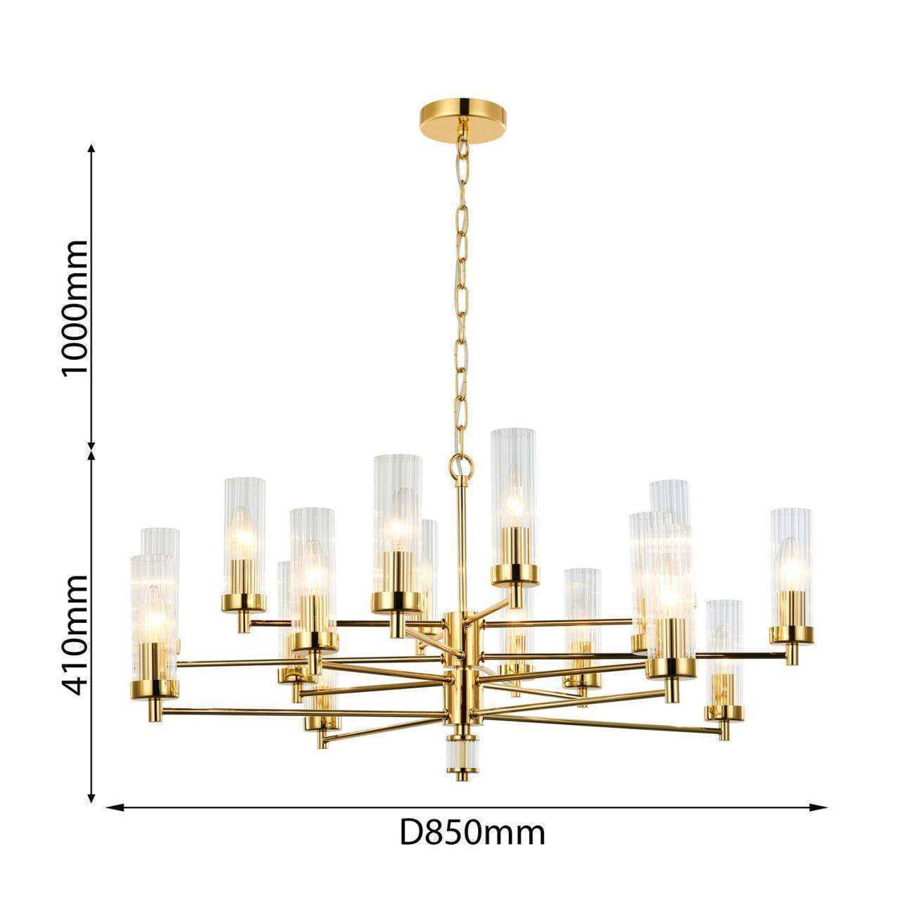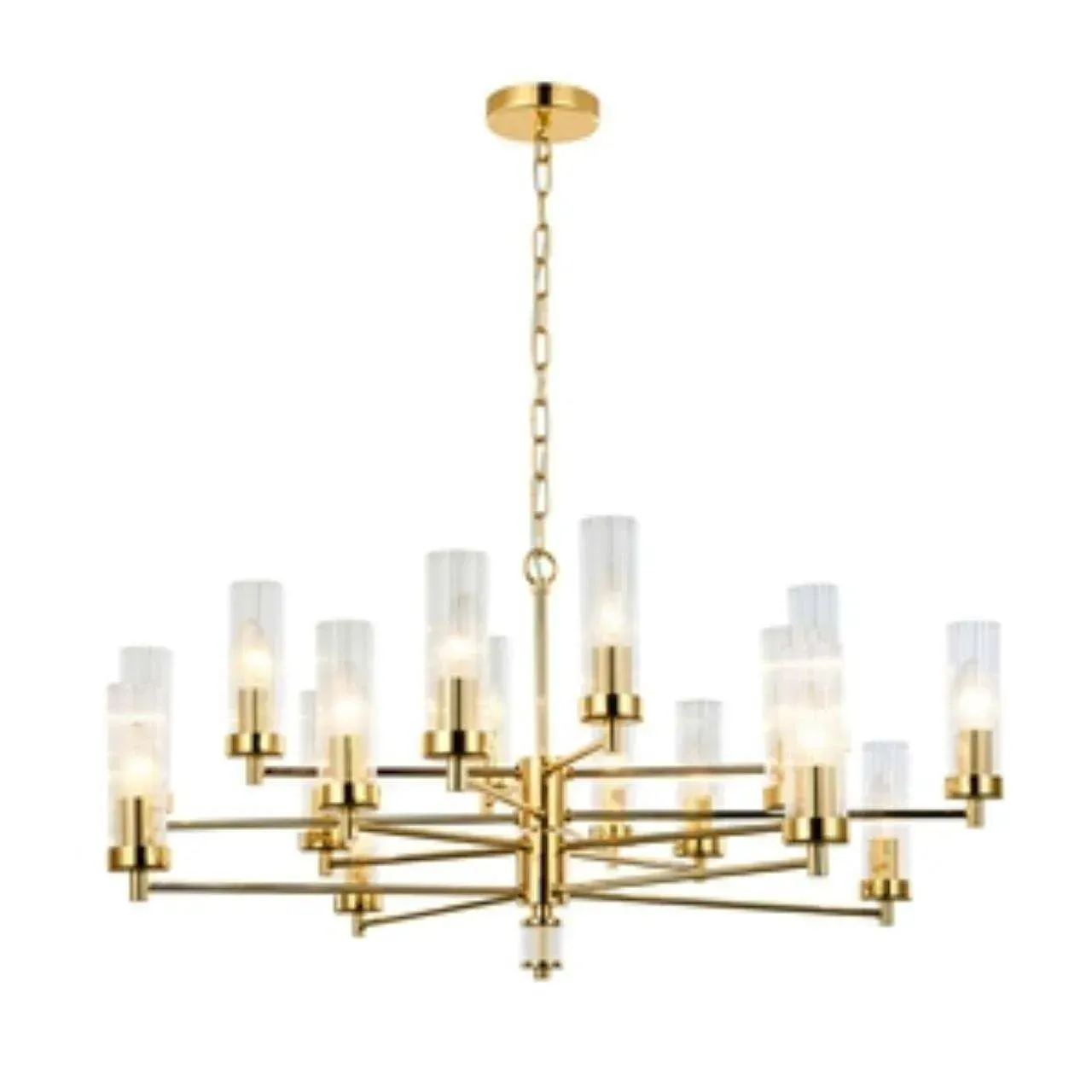 Каркас золотого цвета, плафоны из прозрачного стекла