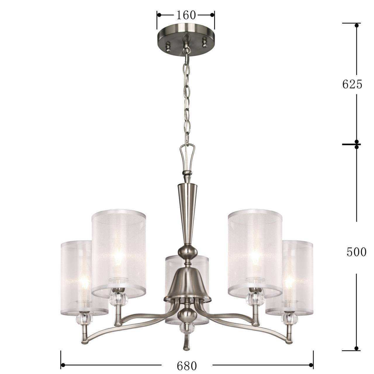 Каркас цвета никель, абажуры из органзы белого цвета с серебряной тесьмой, декоративные элементы из прозрачного стекла, люстру можно монтировать как п