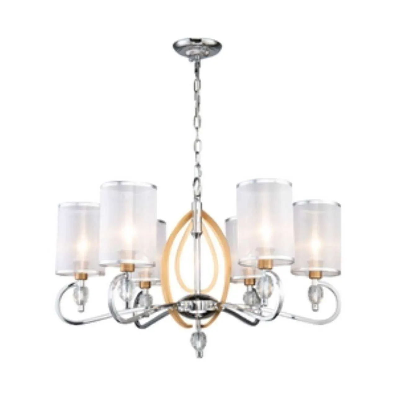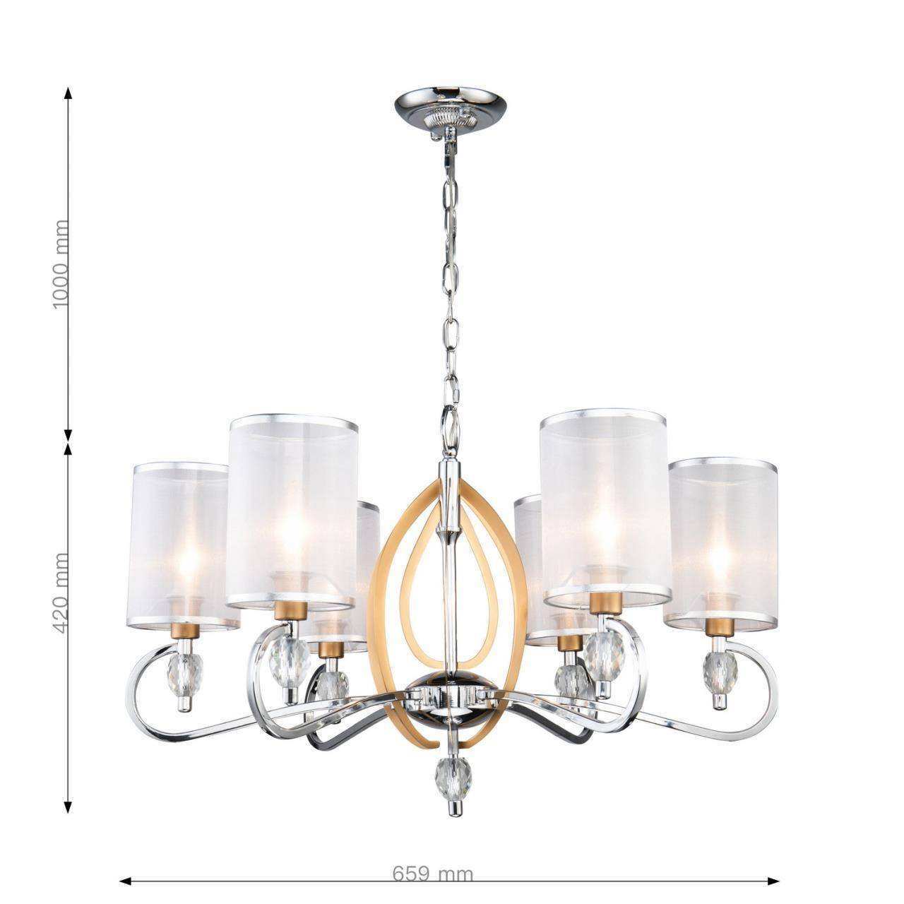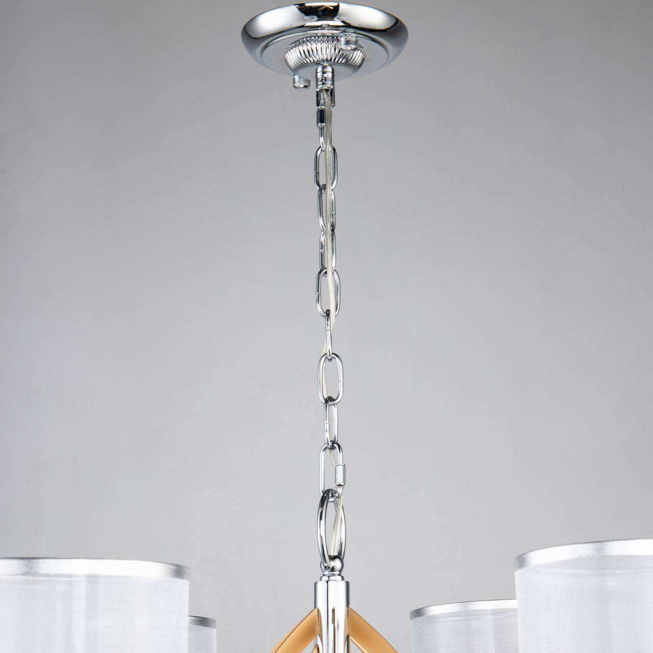Каркас серебряного цвета и цвета латуни, абажур из полупрозрачной органзы с серебряной тесьмой, декоративные элементы выполнены из прозрачного хрустал