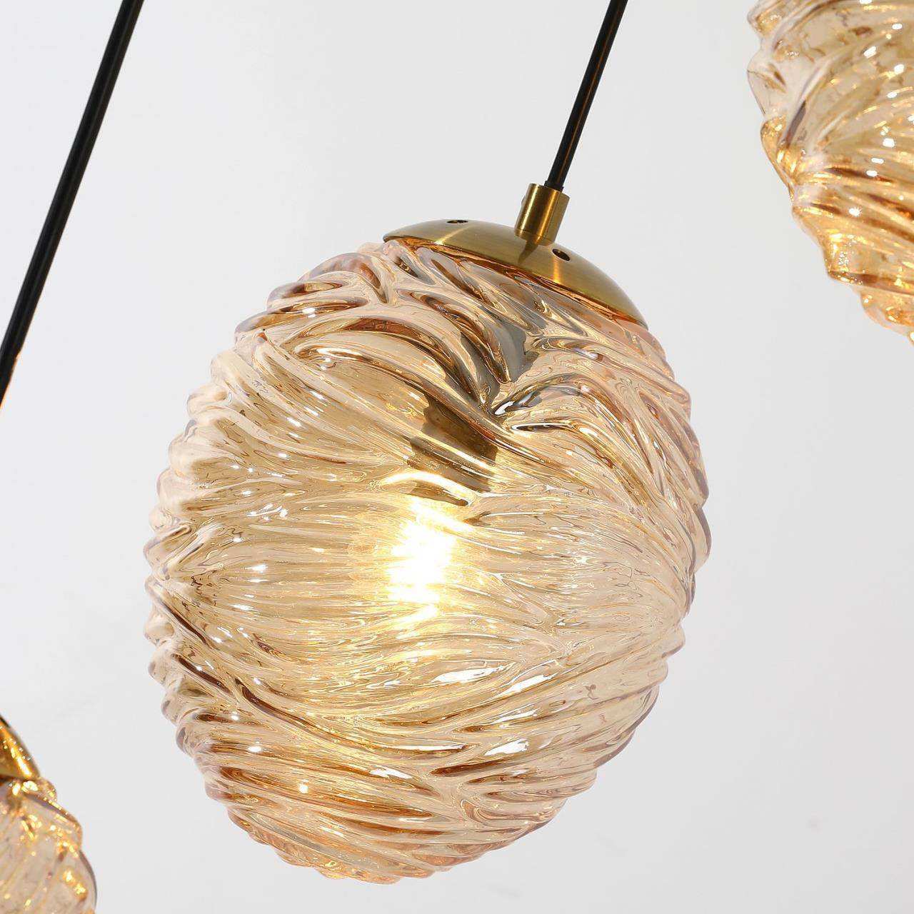 Каркас цвета латунь, плафоны из стекла янтарного цвета