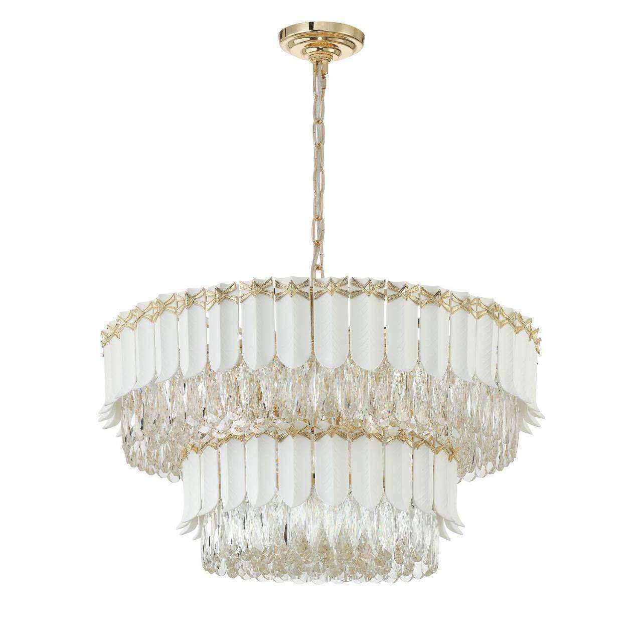 каркас золотого цвета, керамические пластины белого цвета, подвески из хрусталя высшего качества