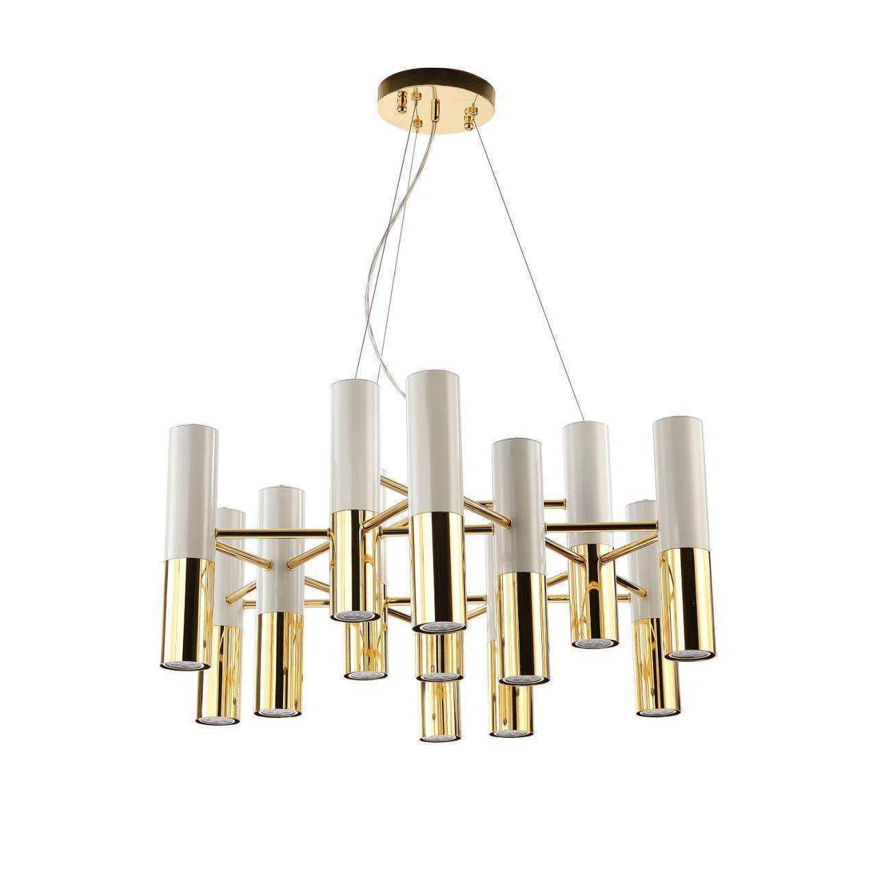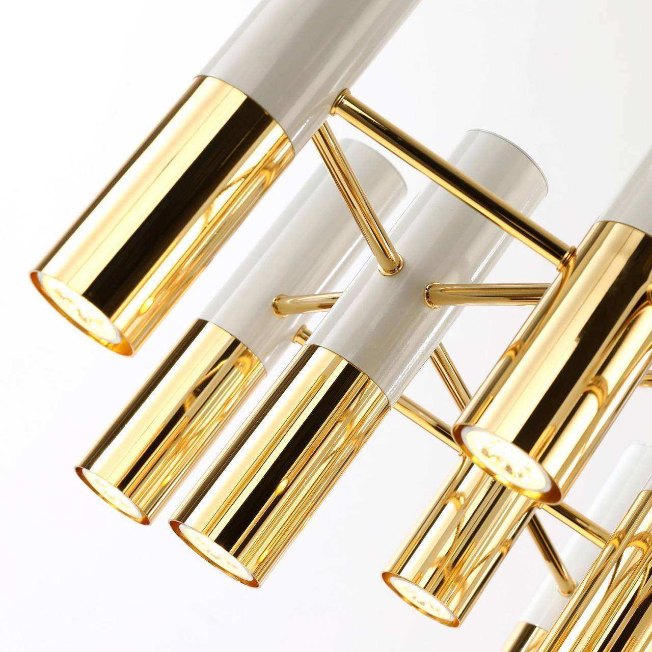 Каркас цвета золотой гальваники, плафоны состоят из двух цветов: сияющий белый и золотая гальваника