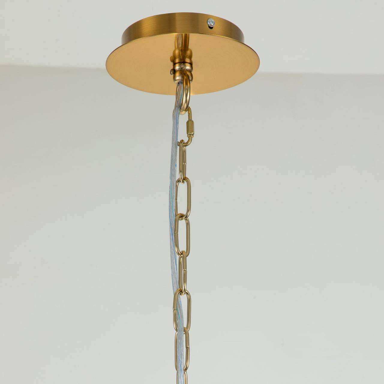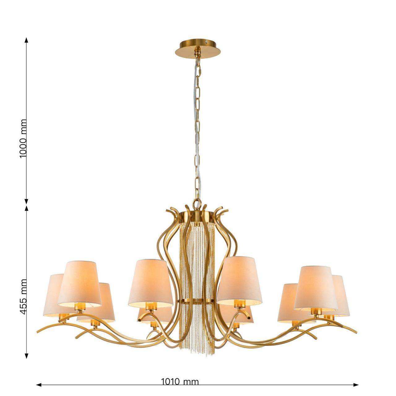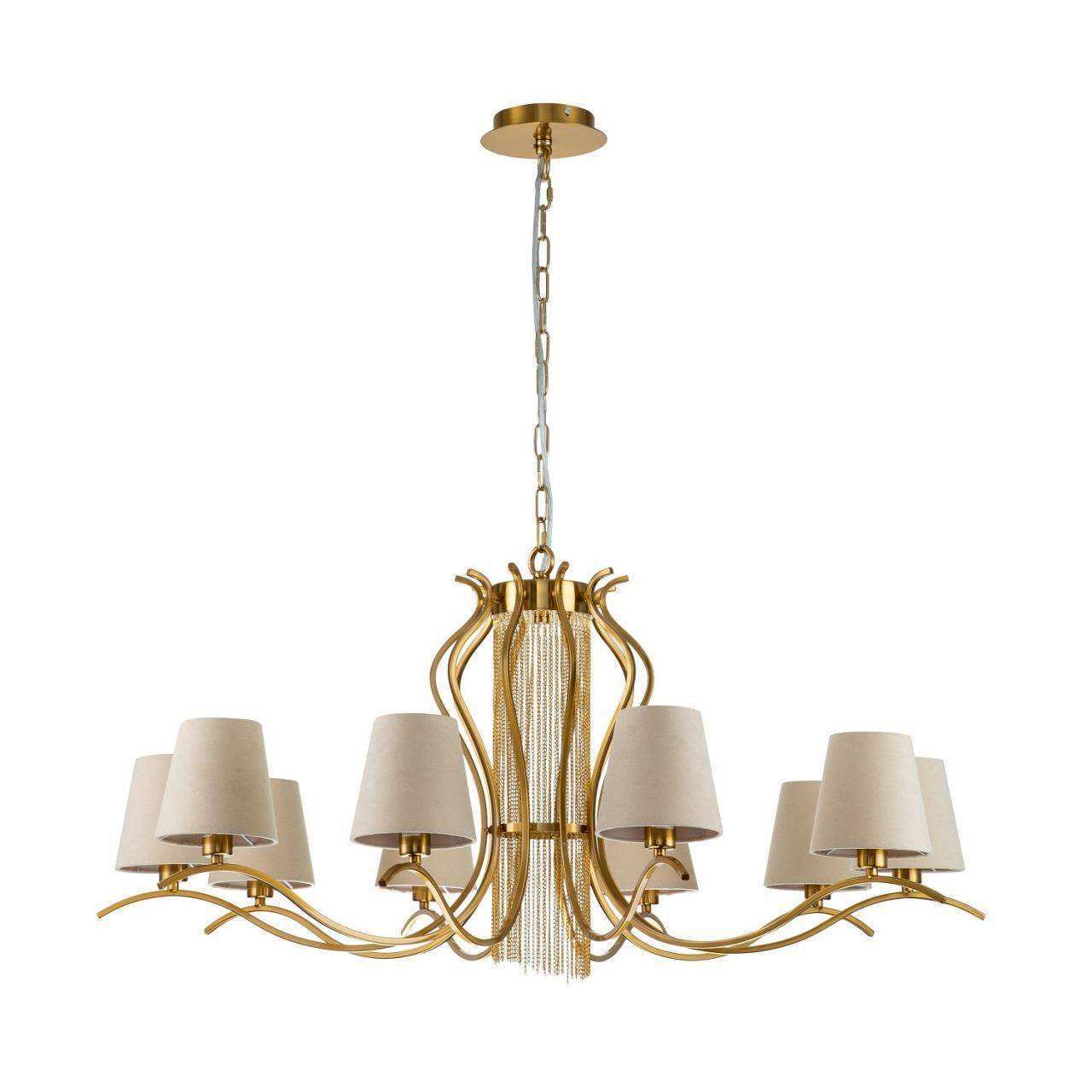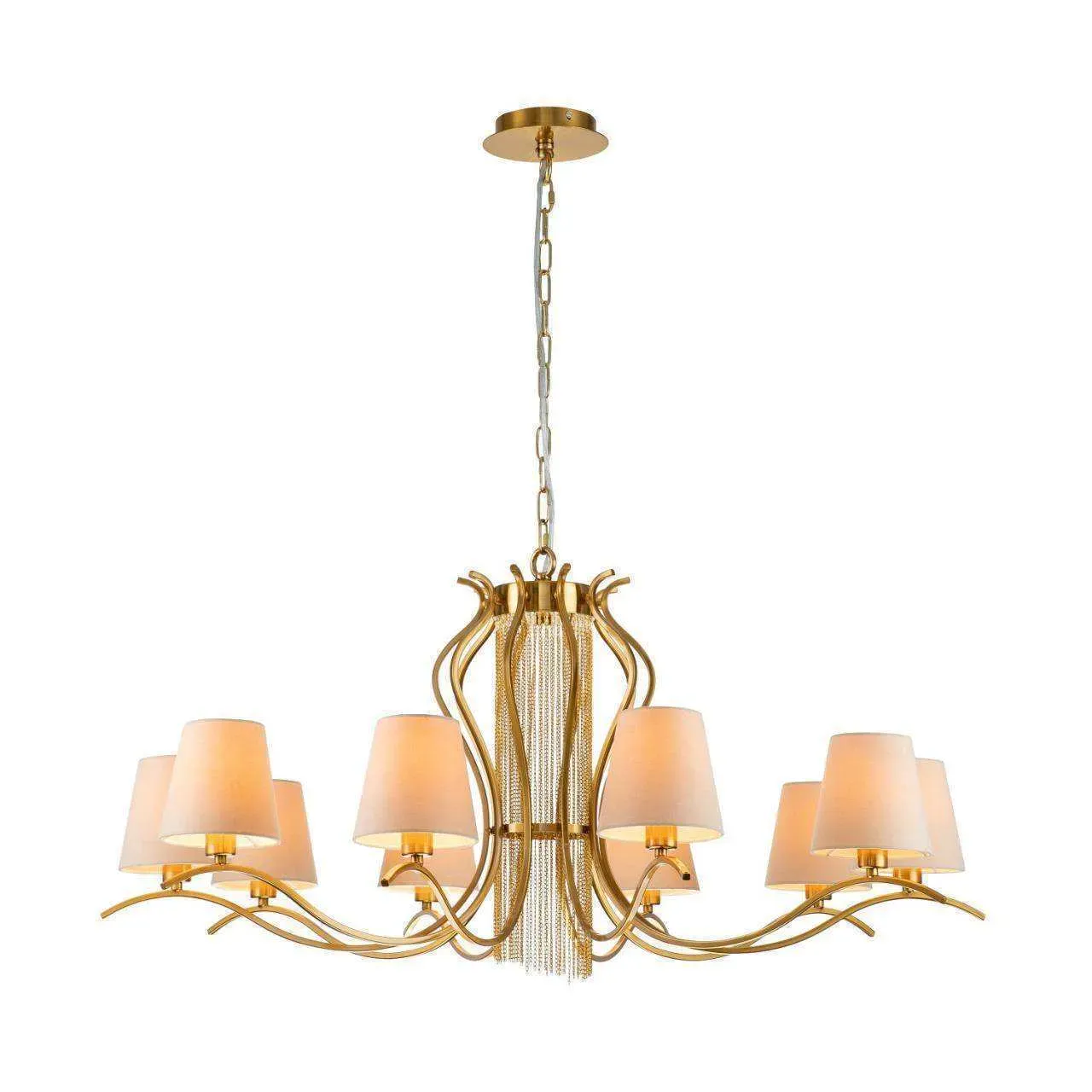 Каркас цвета латунь, плафоны из велюровой ткани кремового цвета, декоративный элемент в виде латунных цепочек