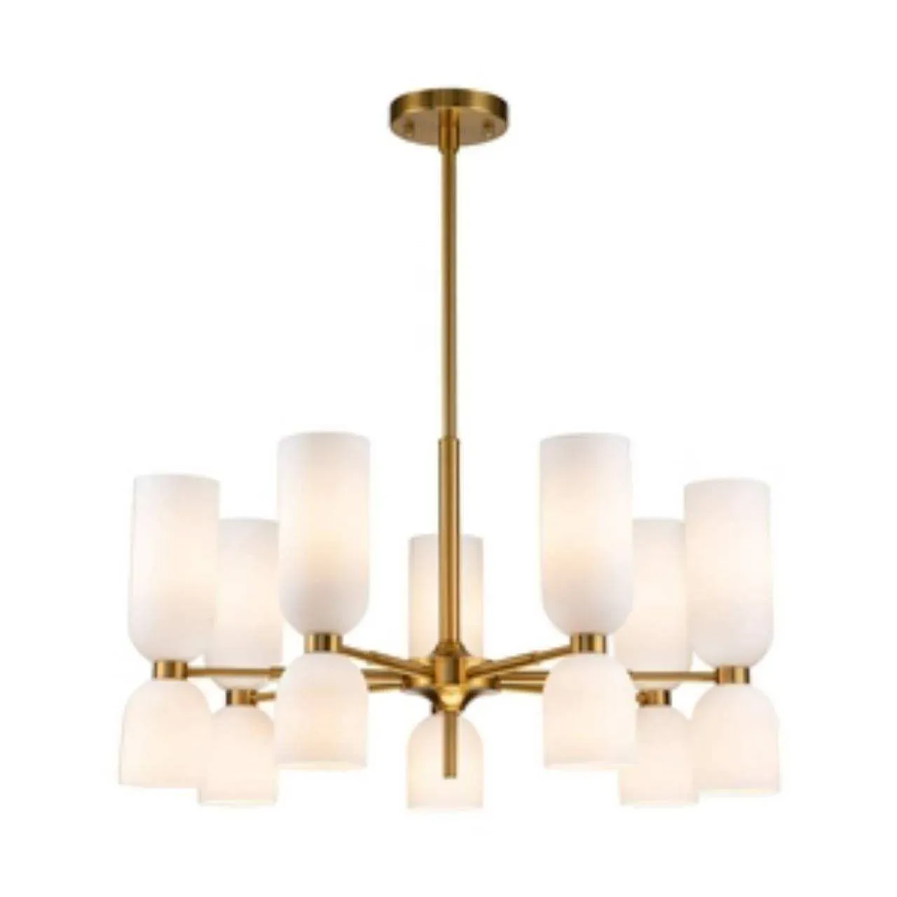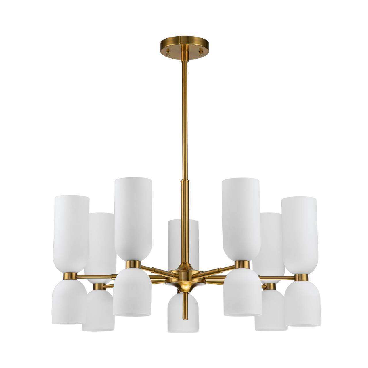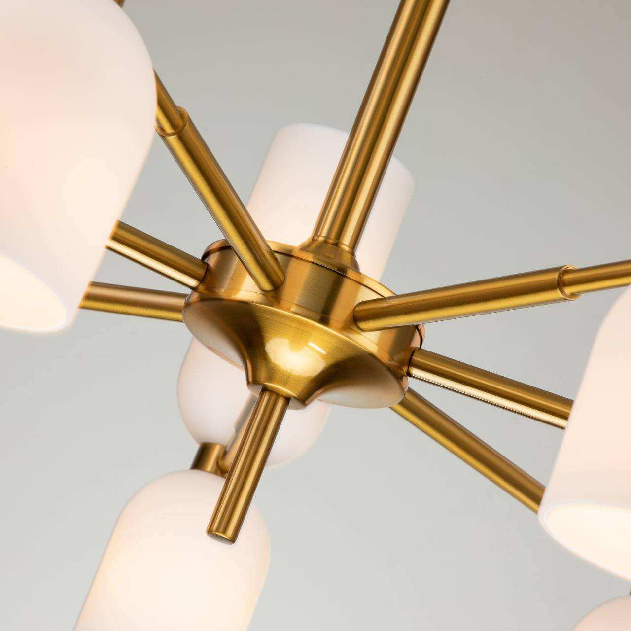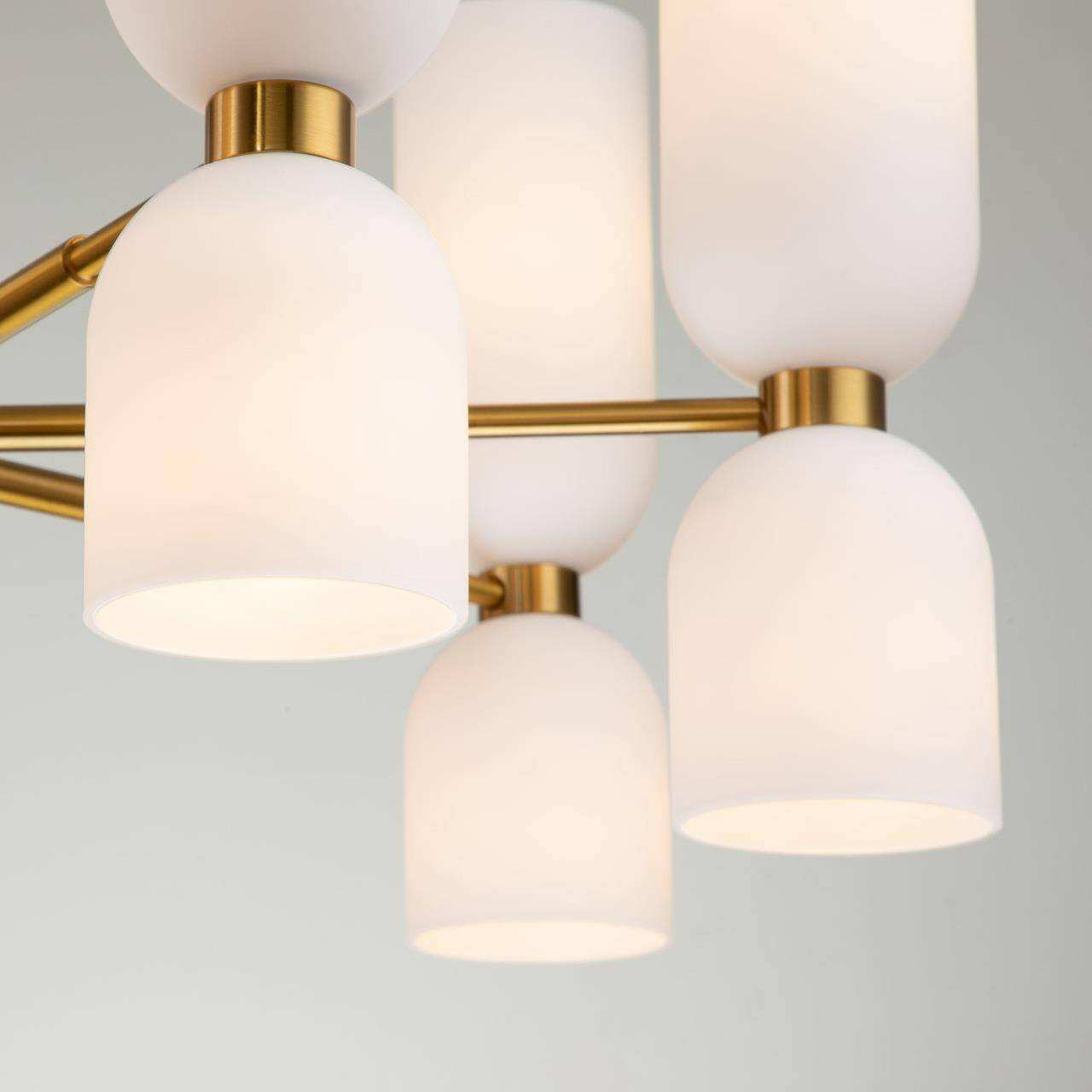 Каркас цвета латунь, плафоны из белого стекла