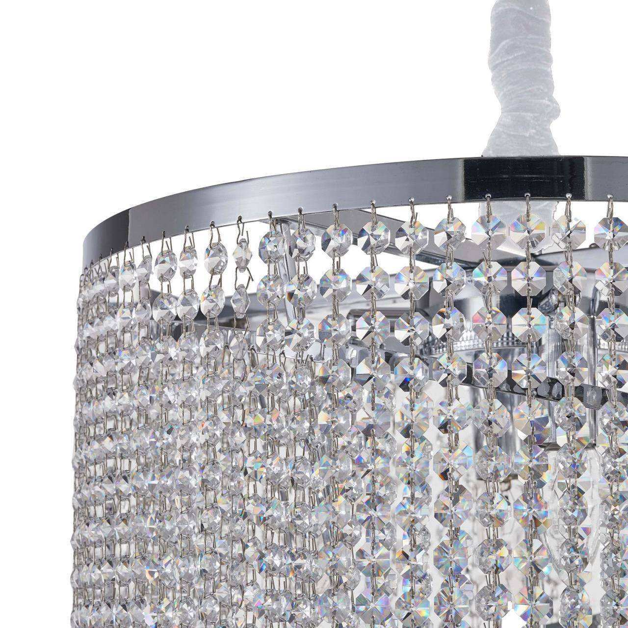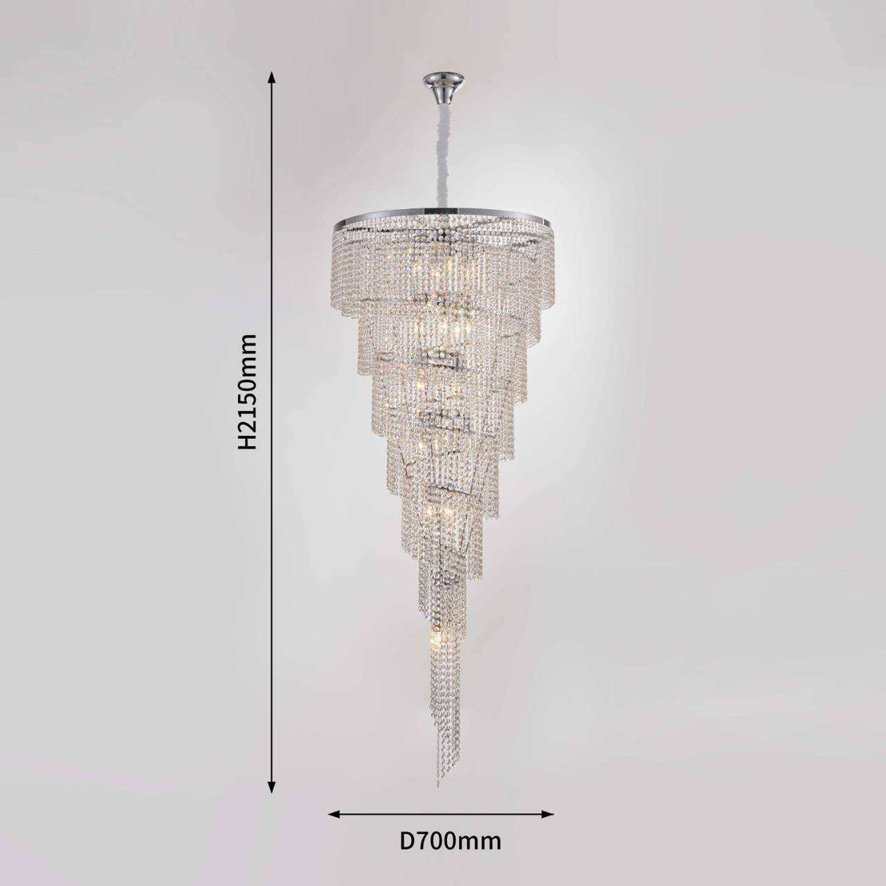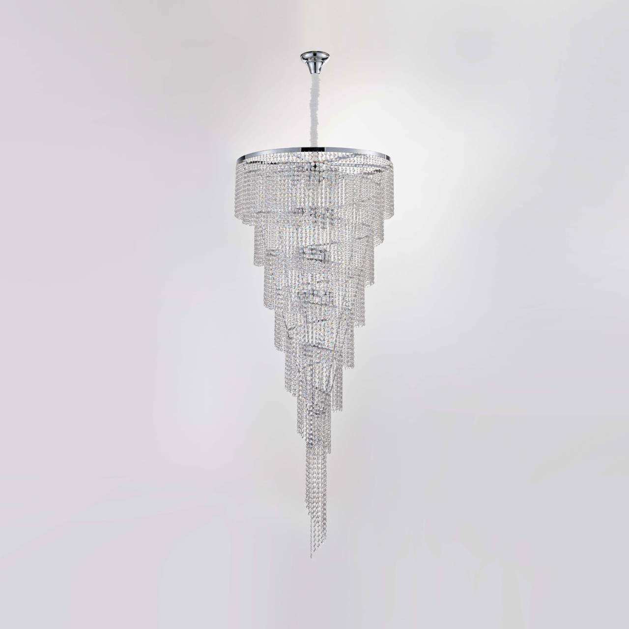 Каркас цвета никеля, плафон состоит из спирального каскада хрустальных подвесок